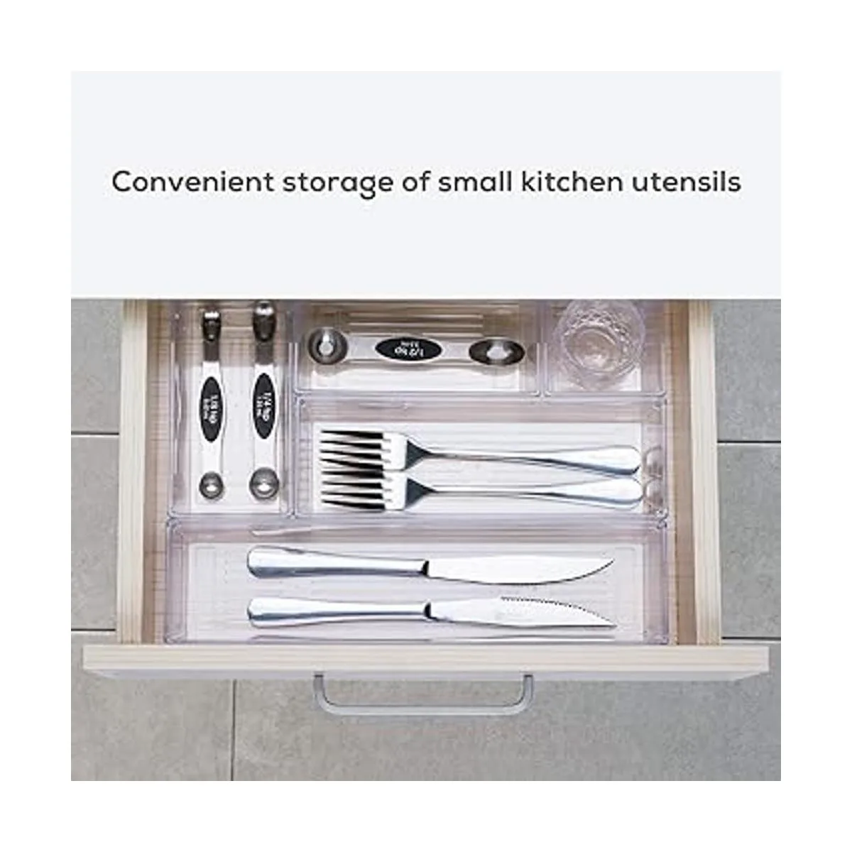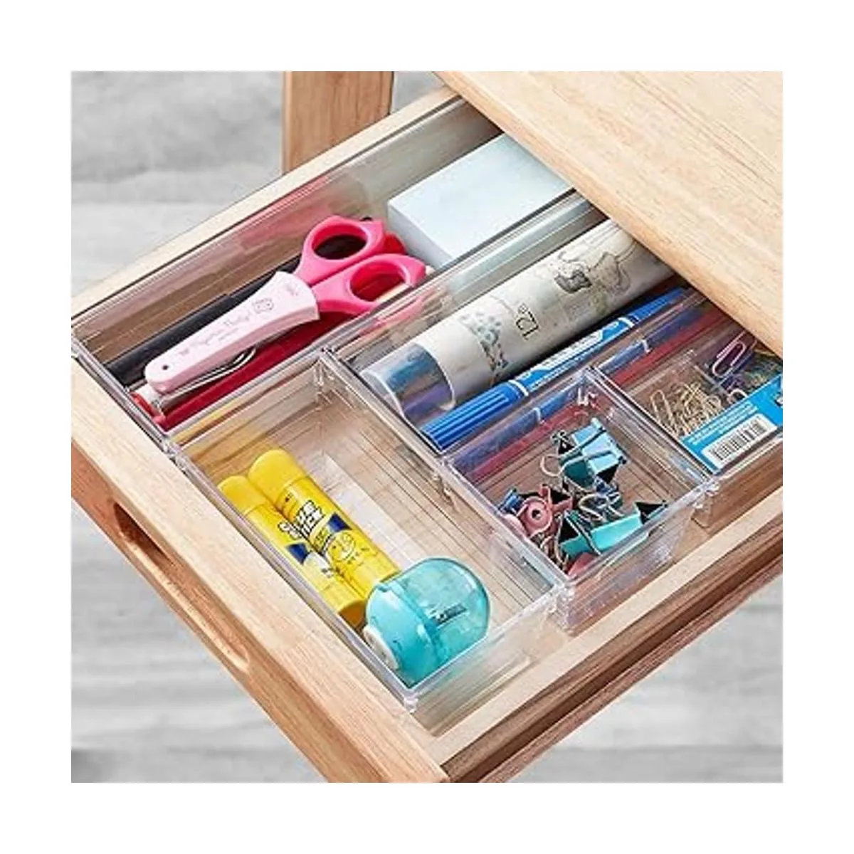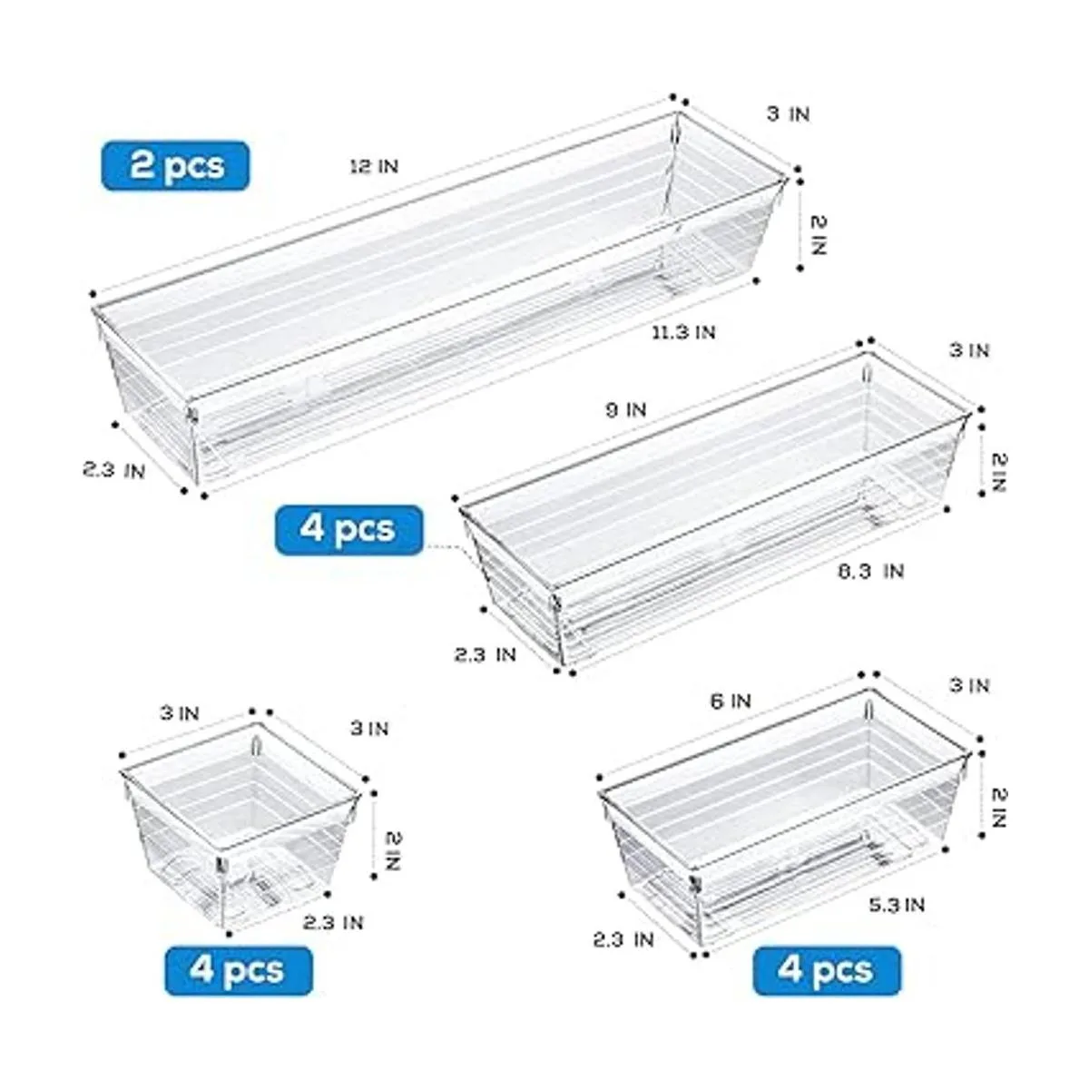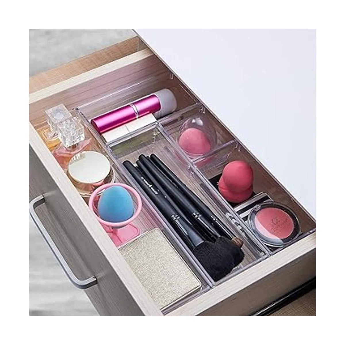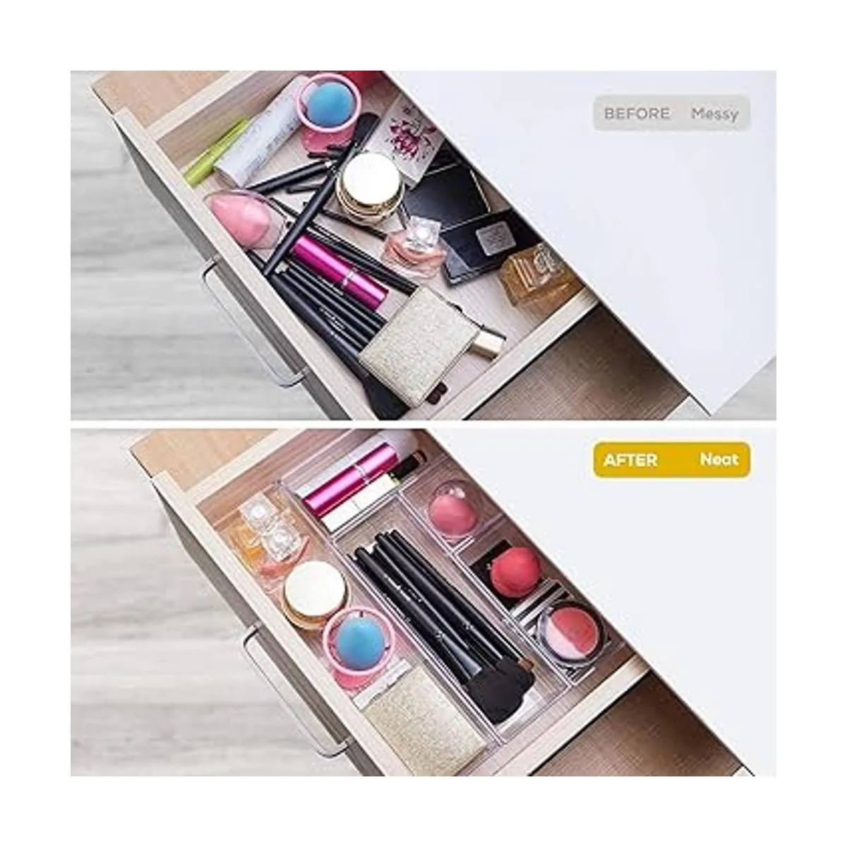 Materiales de alta calidad: El organizador de cajones está hecho de plástico duro y transparente de alta calidad. Y también es fácil de limpiar, ecológico, transparente, sin BPA, irrompible, reciclado