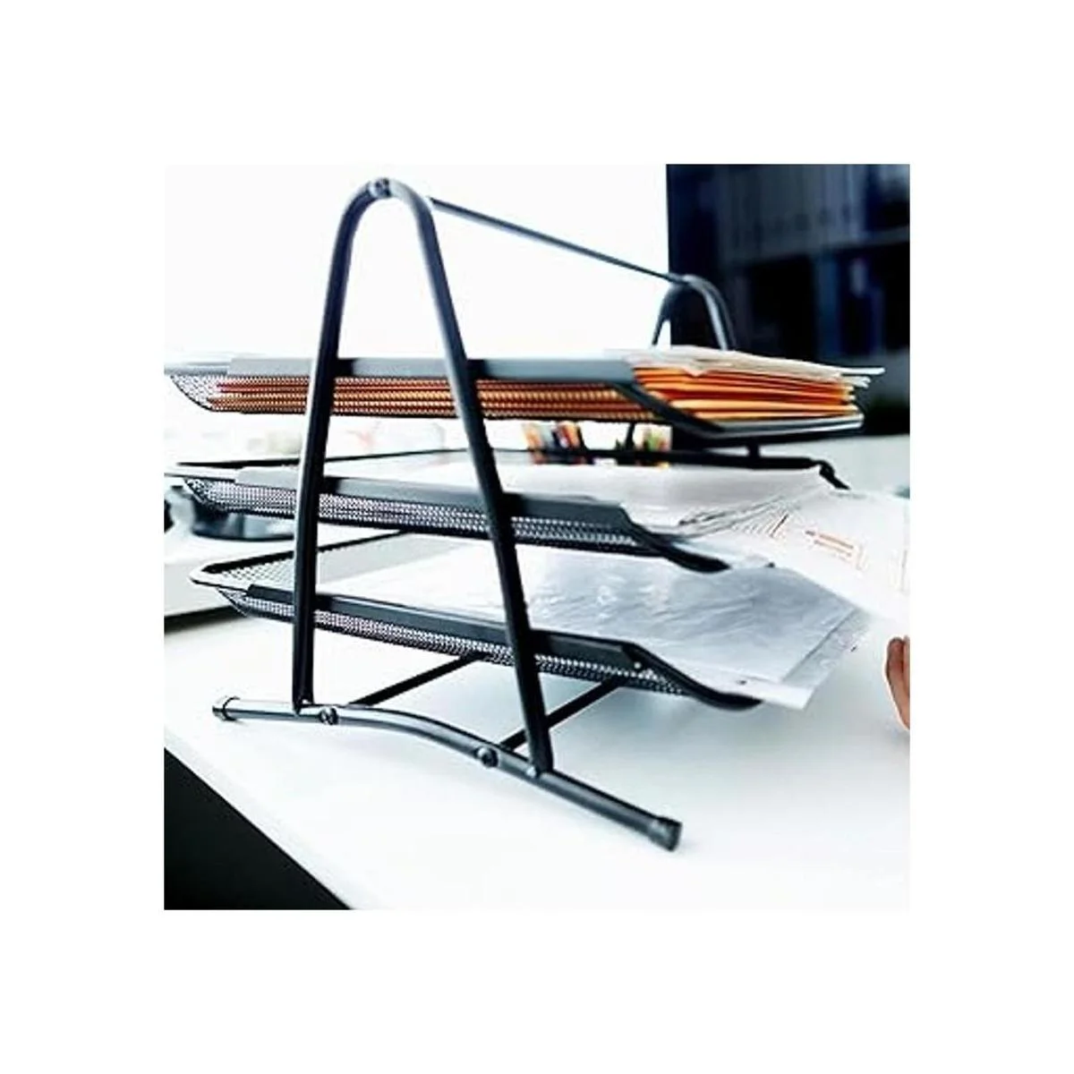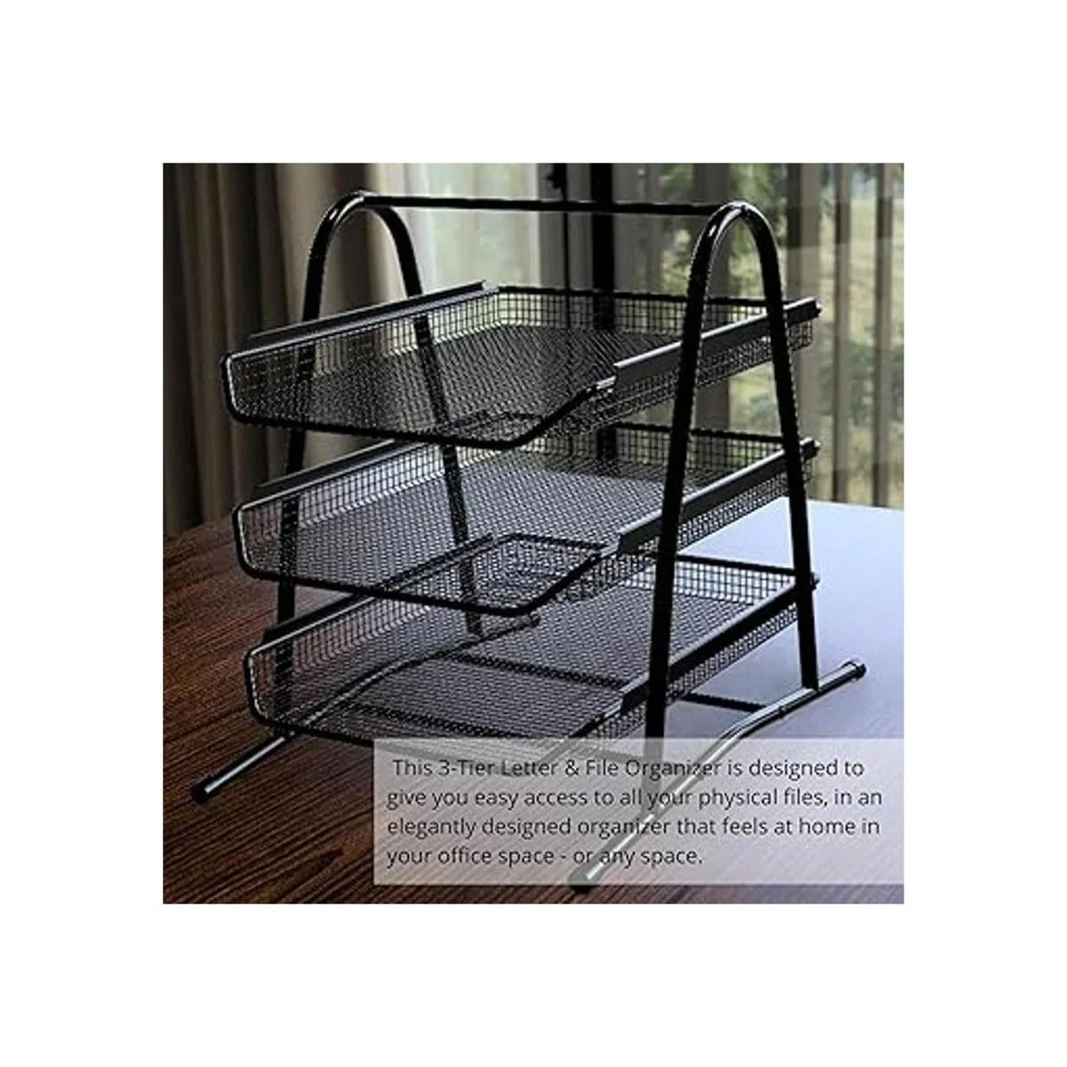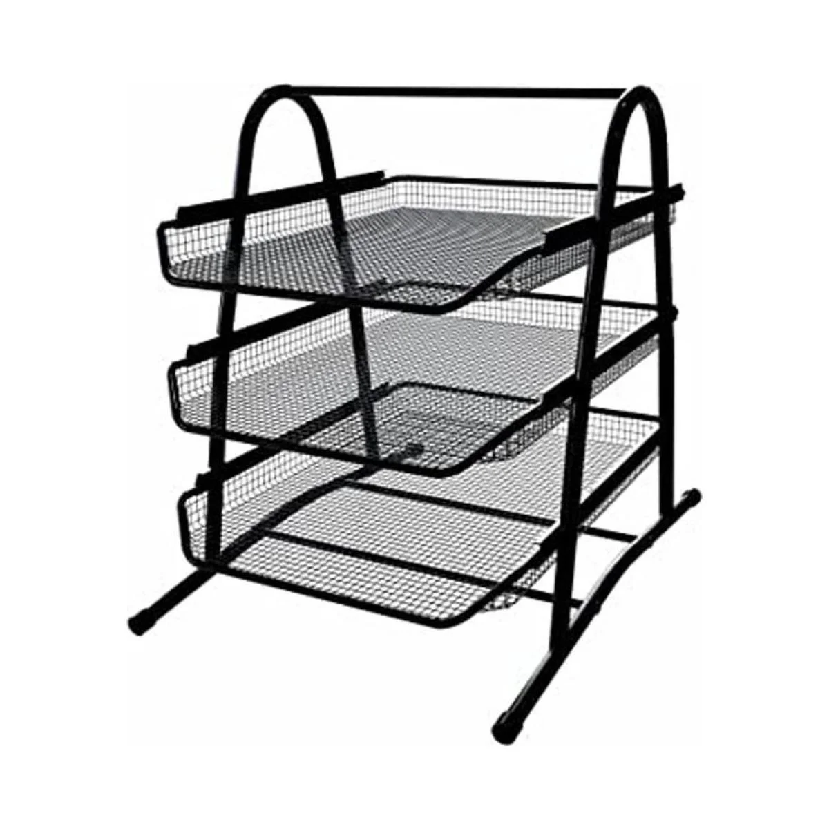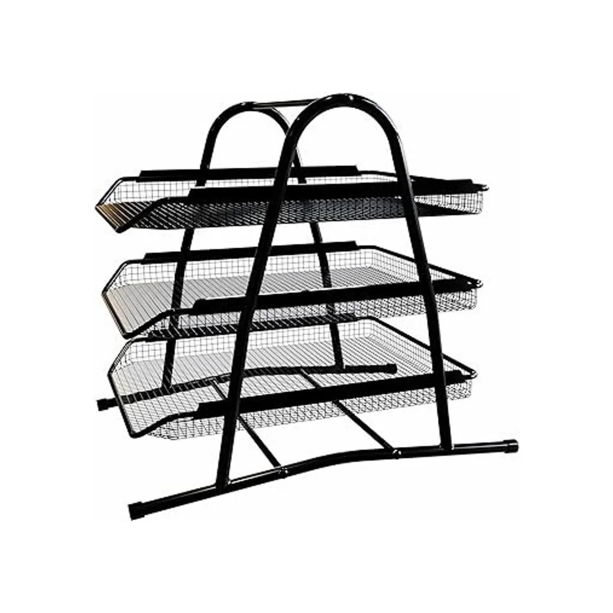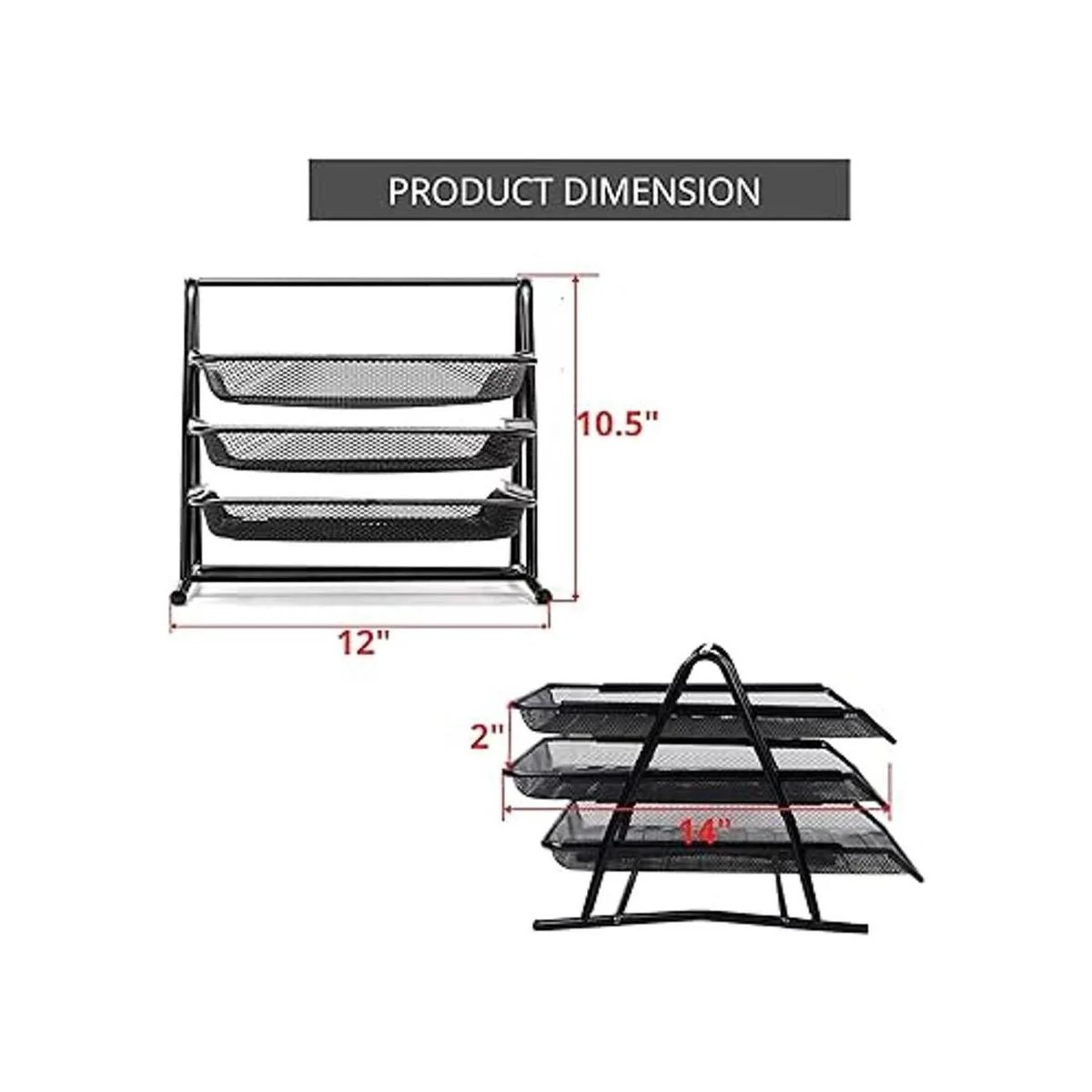 Bandeja organizadora de papel de 3 niveles para escritorio, apilable negro, bandejas de malla de metal, soporte multifuncional para documentos y almacenamiento para oficina y escritorio