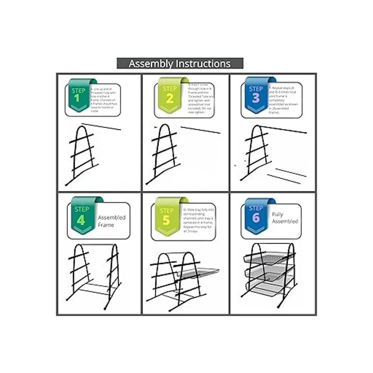 Fácil de montar: se puede montar con tornillos y un simple destornillador, y se puede montar fácilmente en 35 minutos para obtener un administrador de escritorio perfecto. El organizador de bandeja está hecho de malla de metal negro ligero y un recubrimiento de polvo ambiental para evitar el óxido o la decoloración y es más resistente y duradero.
