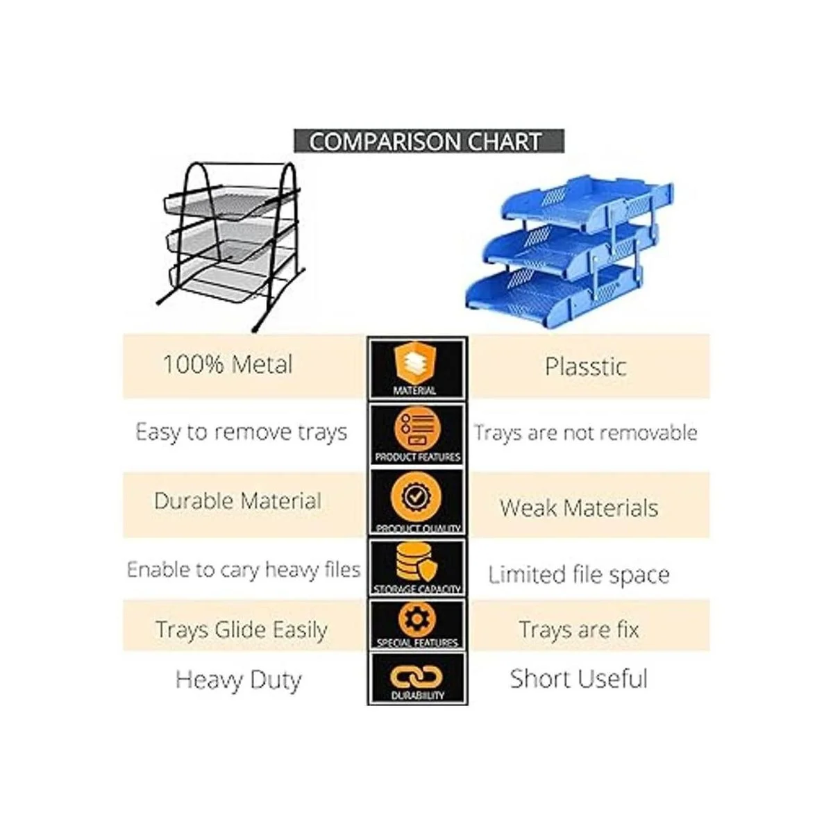Resistente y duradero: el organizador de triple bandeja de archivos tiene una estructura resistente y puede contener varios libros de texto, carpetas, documentos, papel suelto, etc. Todos los tornillos son de metal roscado; sin cierres de plástico, lo que ayuda a proporcionar una base sólida para sostener tus documentos importantes.
