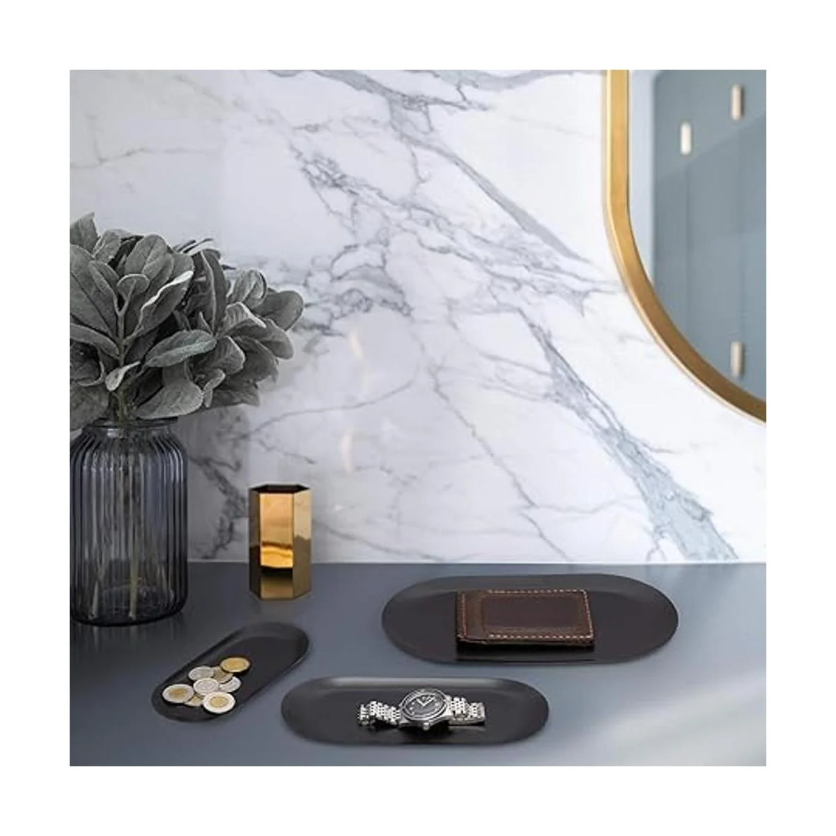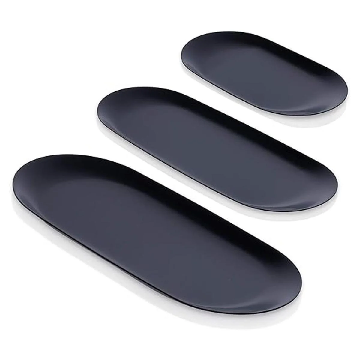 Bandeja organizadora negra, juego de 3, placa decorativa de almacenamiento de tocador de acero inoxidable para joyas, accesorios, toallas, recortadora de velas negro, todo S, M, L