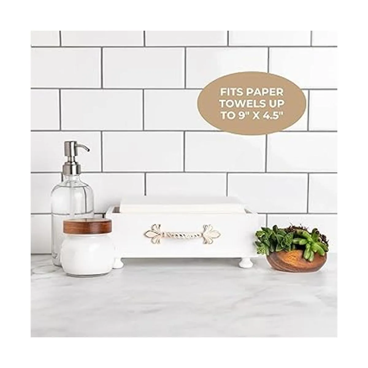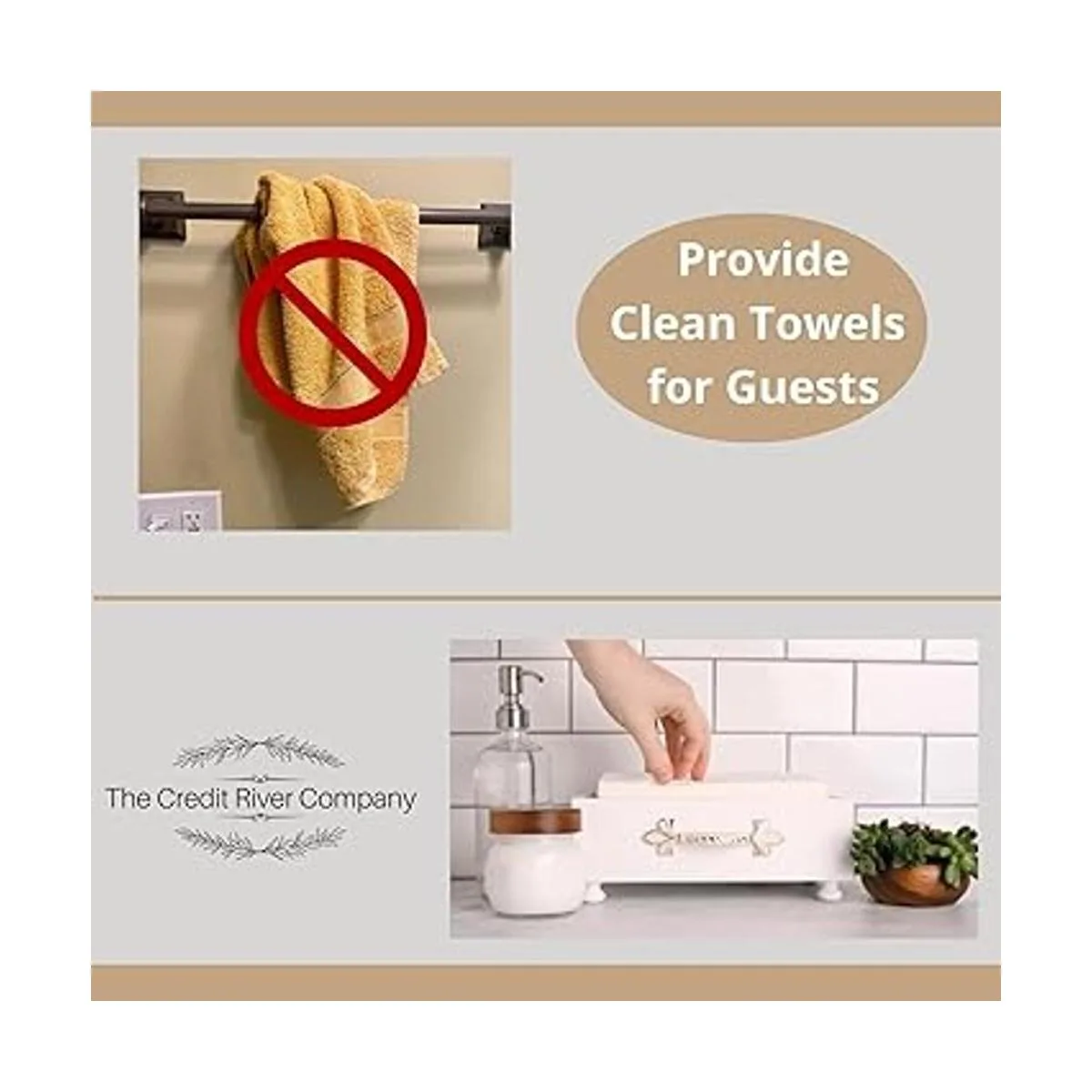 Mantenlo ordenado: nuestro soporte para toallas de invitados para baño está diseñado para mantener las toallas desechables o servilletas secas y organizadas. Mantén las manos limpias libres de gérmenes con toallas de mano de papel desechables higiénicas que se pueden guardar en este práctico soporte para toallas de mano de papel que ocupa muy poco espacio en tu tocador de baño o encimera.