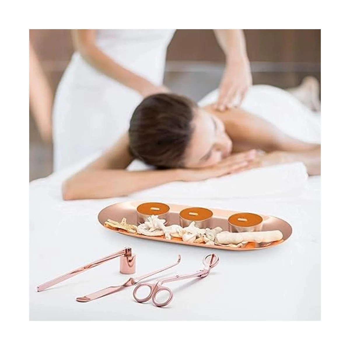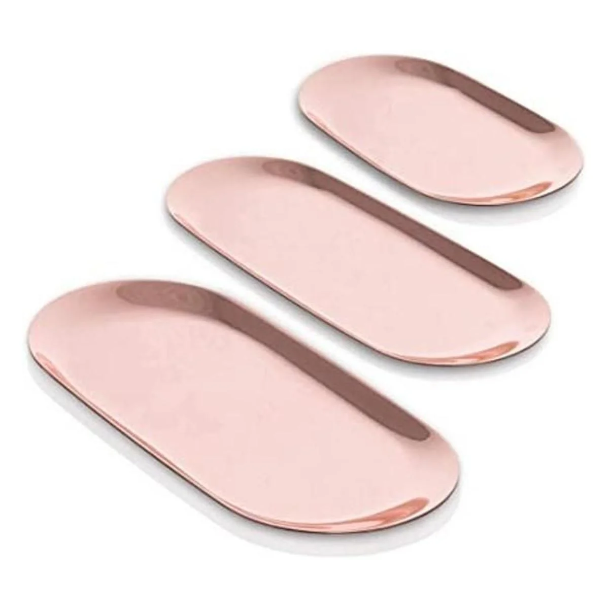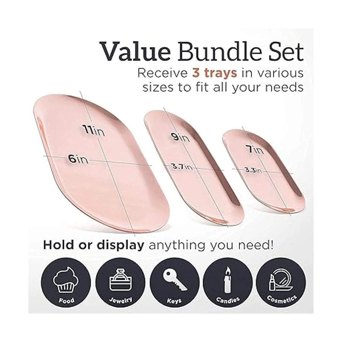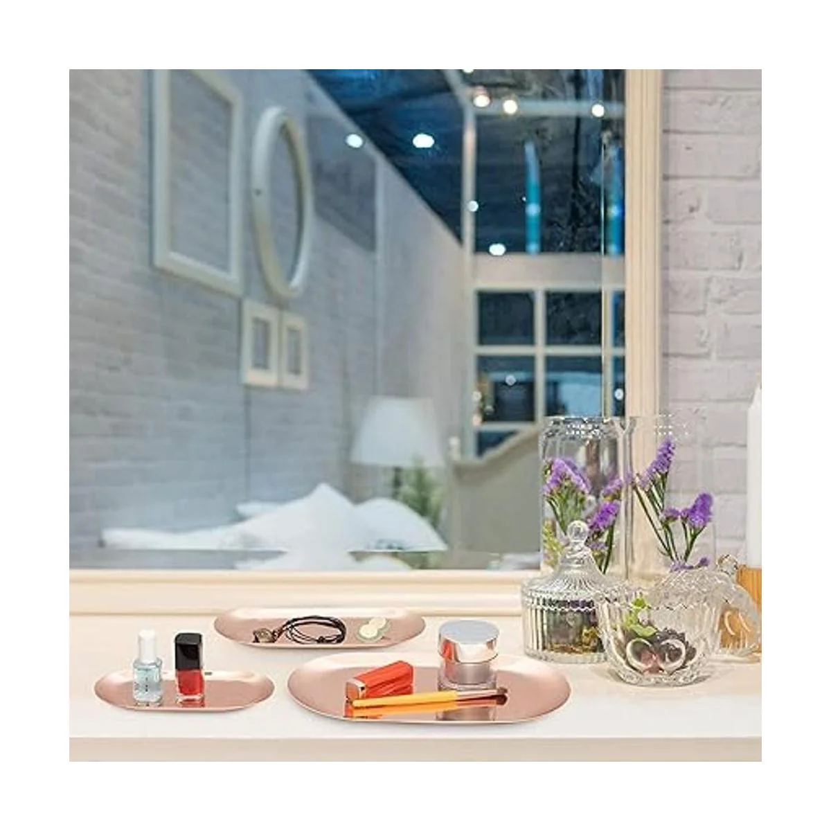 Bandeja para velas de oro rosa, juego de 3, placa organizadora decorativa de almacenamiento de acero inoxidable para joyas, maquillaje, toallas, perfumes, recortadoras de velas todos S, M, L