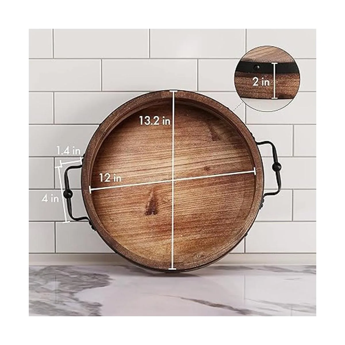 Se adapta a cualquier espacio: con 16 x 13.2 x 2 pulgadas, esta bandeja decorativa para servir es de tamaño mediano para ser funcional sin ocupar demasiado espacio. Su diseño elegante y su altura interior de 1.5 pulgadas son perfectos para llevar o mostrar tus artículos de decoración de bandeja de granja.