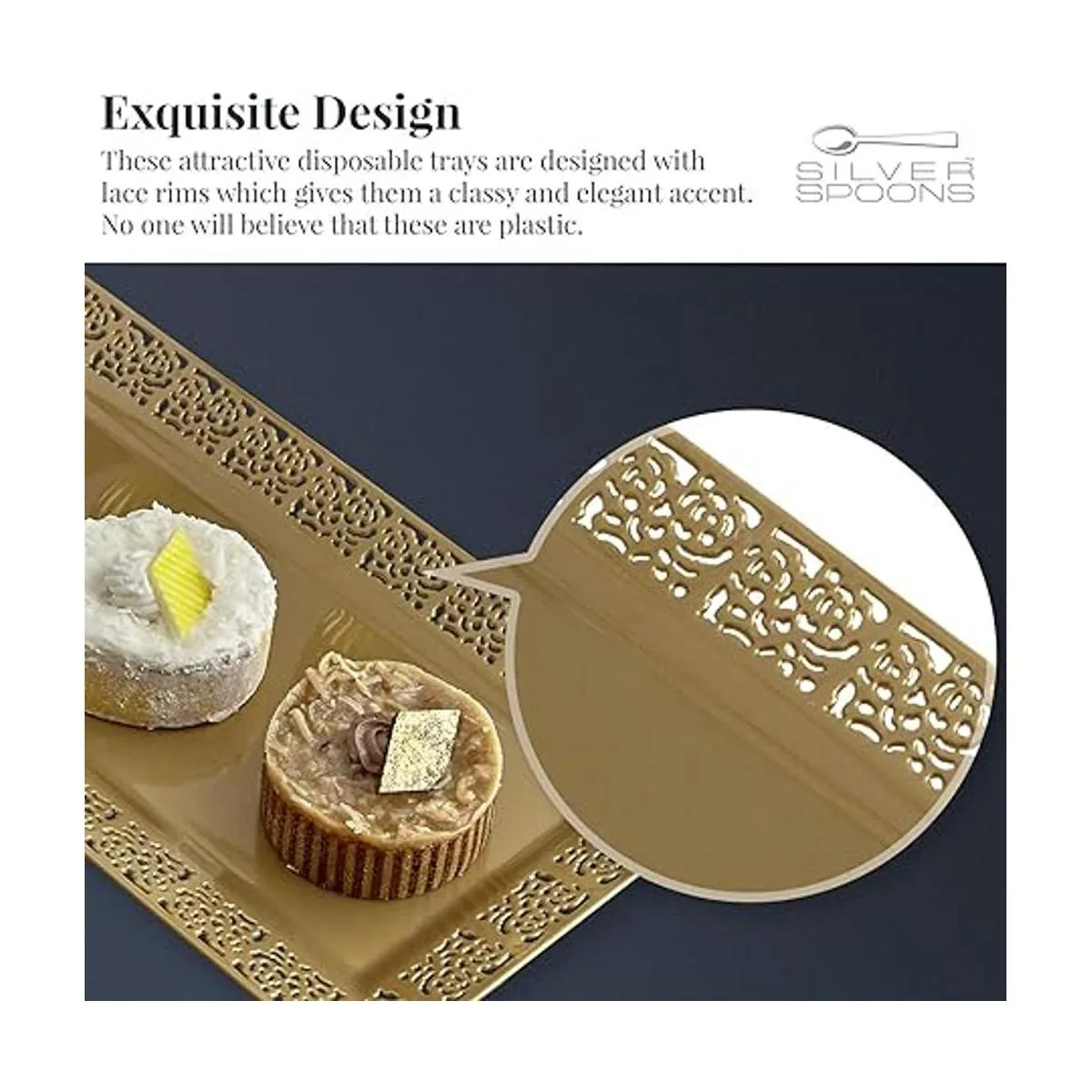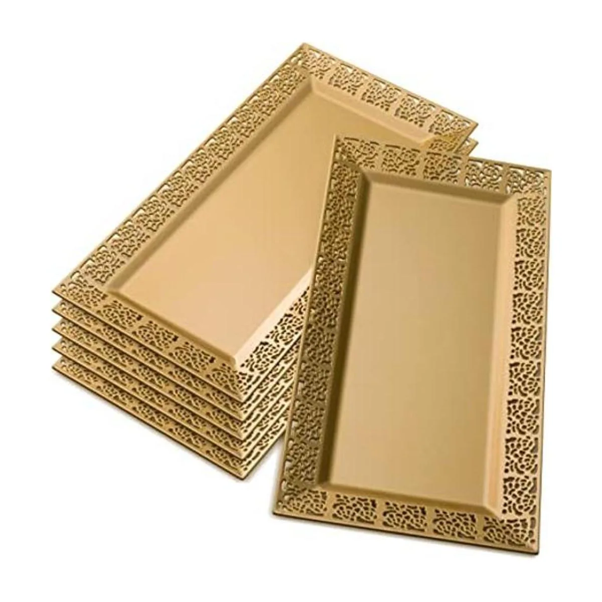 Bandejas de encaje desechables, para bodas y comedores de lujo 6 piezas Oro 14 x 7 .5 pulgadas