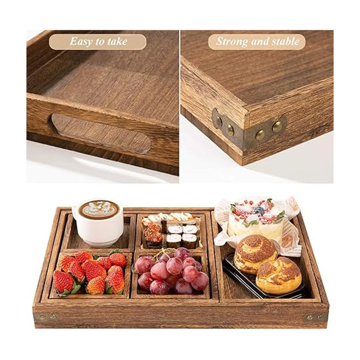 Bandejas de anidación: aspecto y comodidad combinadas; no más espacio en tu cocina ya estrecho No te preocupes, ya que estas bandejas de madera no ocupan mucho espacio. Con su diseño de anidación, puedes estar seguro de que encontrarás un lugar para ellos en tu armario.