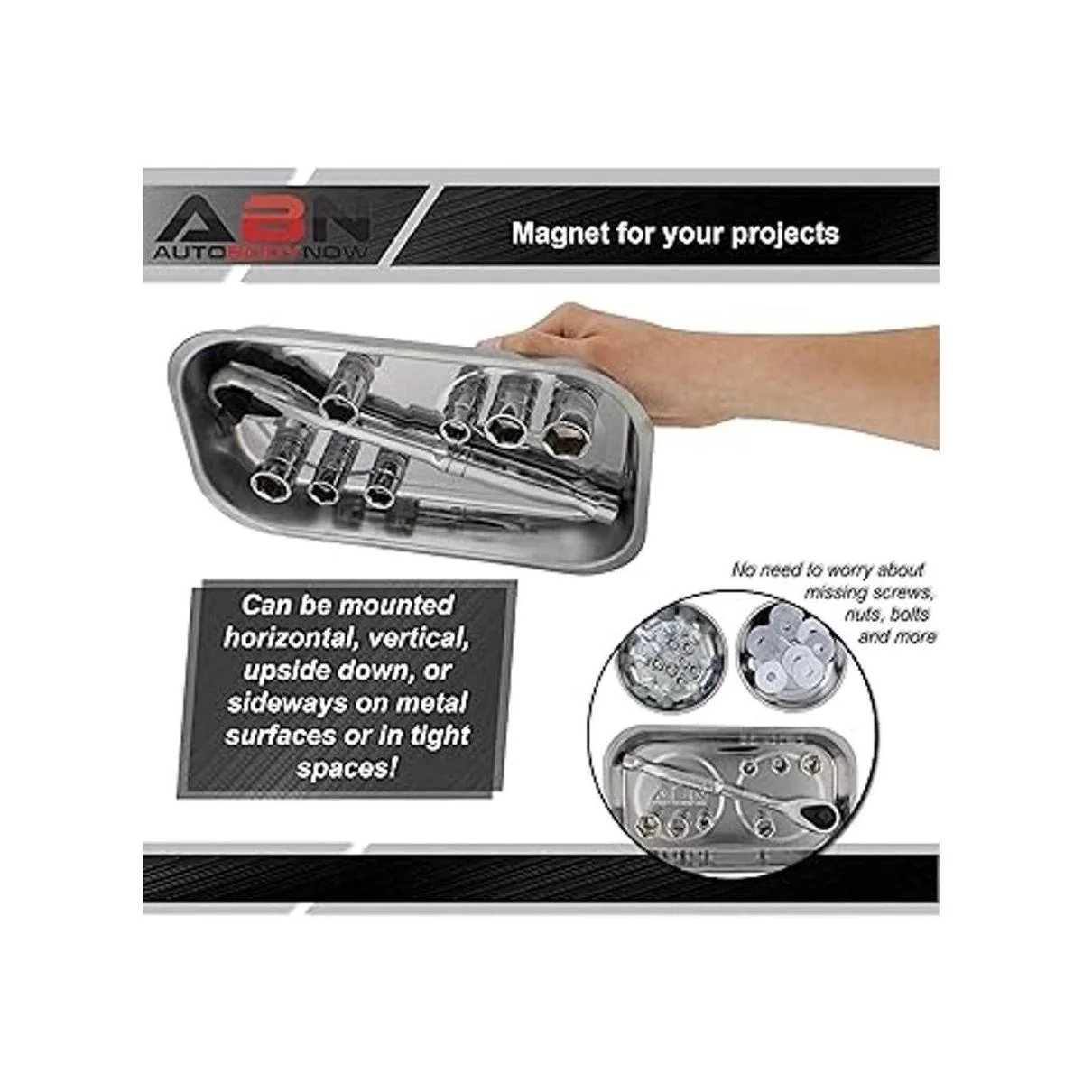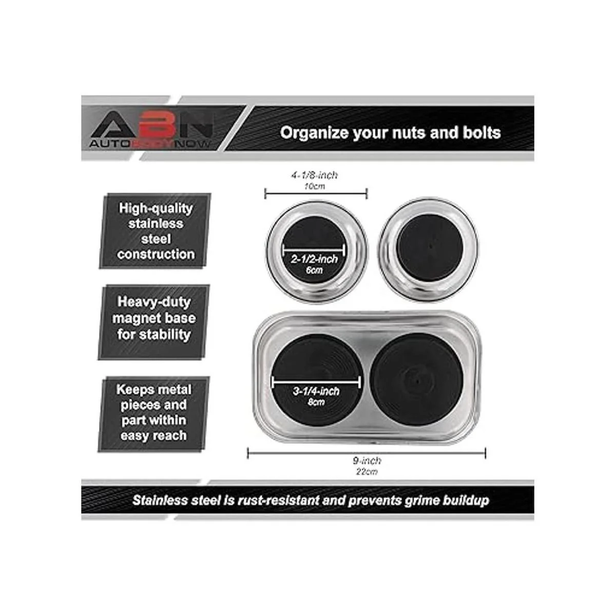 Organiza tus tuercas y pernos: si eres un mecánico profesional o tienes proyectos en casa, depende de la bandeja magnética de ABN para piezas magnéticas, paquete de 3 bandejas magnéticas mecánicas; el paquete incluye 2 cuencos magnéticos y 1 bandeja magnética para tu comodidad
