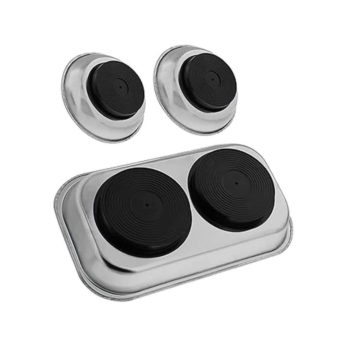 Tamaño perfecto: la bandeja del juego de bandejas magnéticas mide 8.7 x 5.1 in y cuenta con 2 imanes redondos de 3.1 in de diámetro; el juego también incluye 2 cuencos de 3.9 in de diámetro; los imanes de los cuencos miden 2.4 in de diámetro