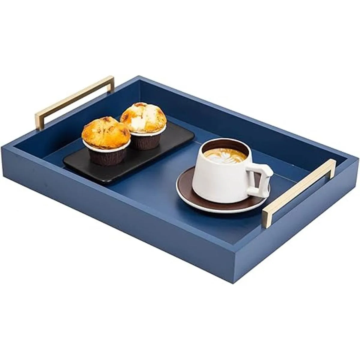 Bandejas otomanas decorativas para mesa auxiliar, bandejas de madera para servir desayuno con asas doradas champán, bebidas, plato para servir licor, se puede utilizar para sostener platos de queso azul
