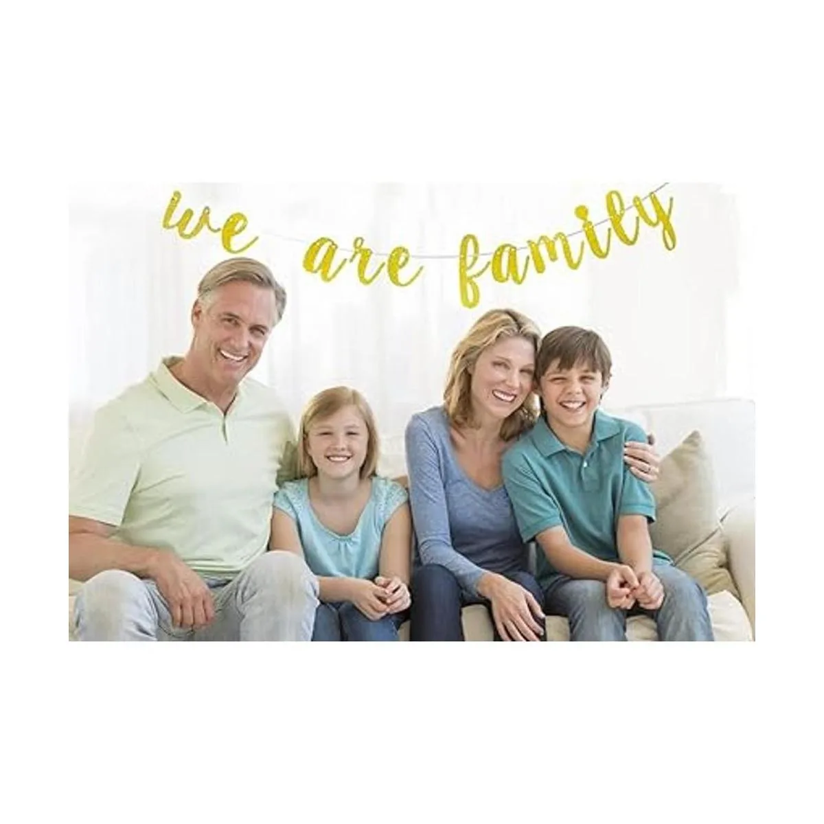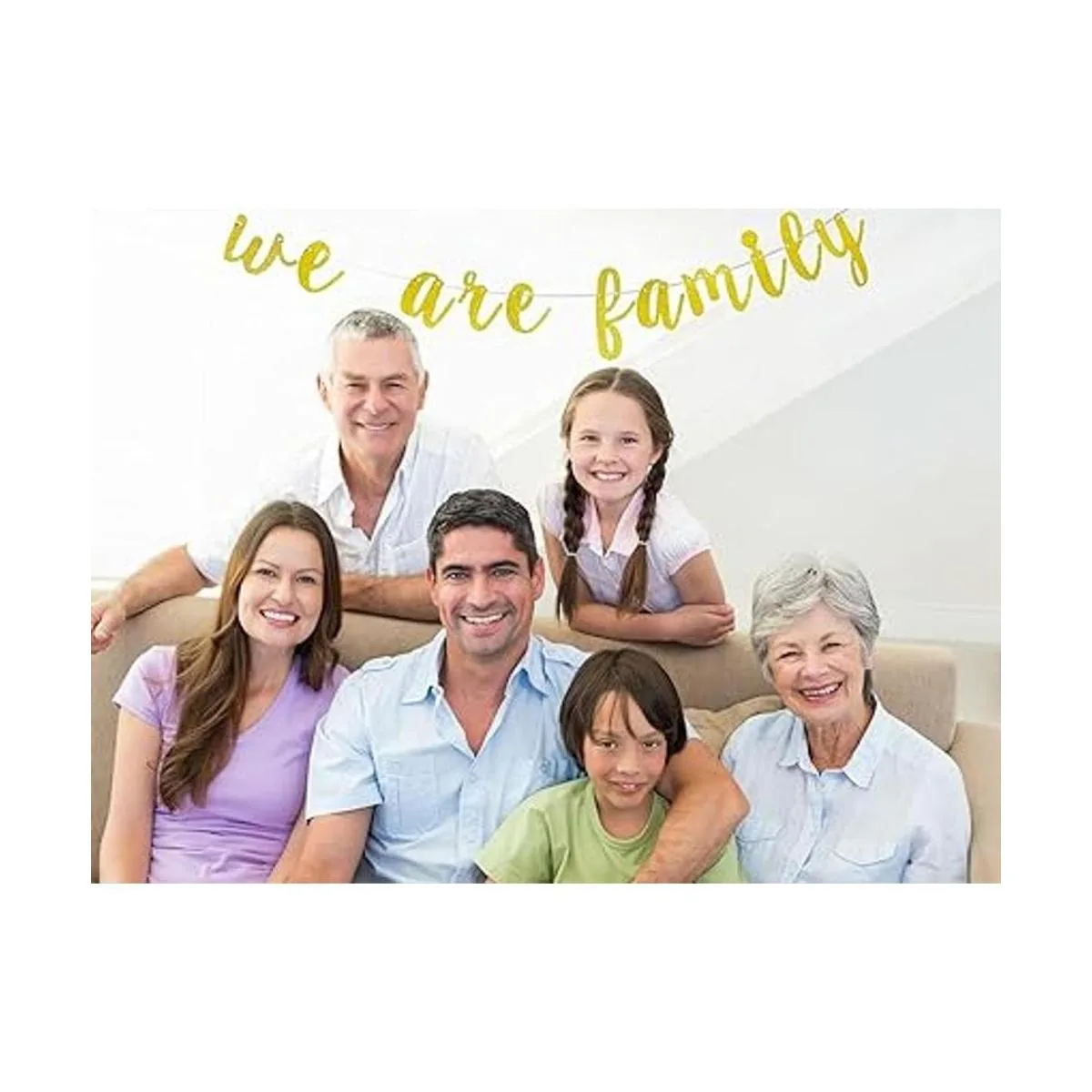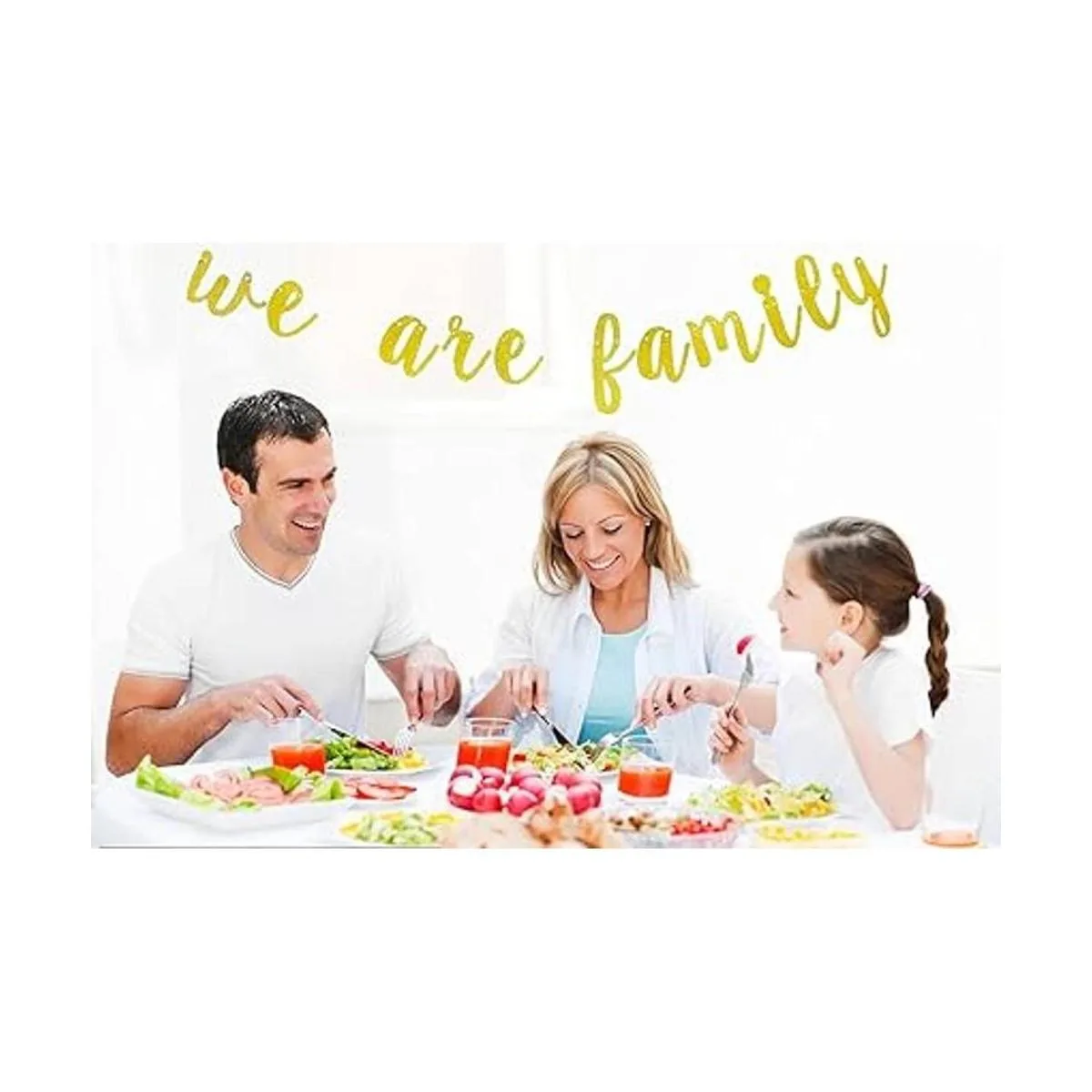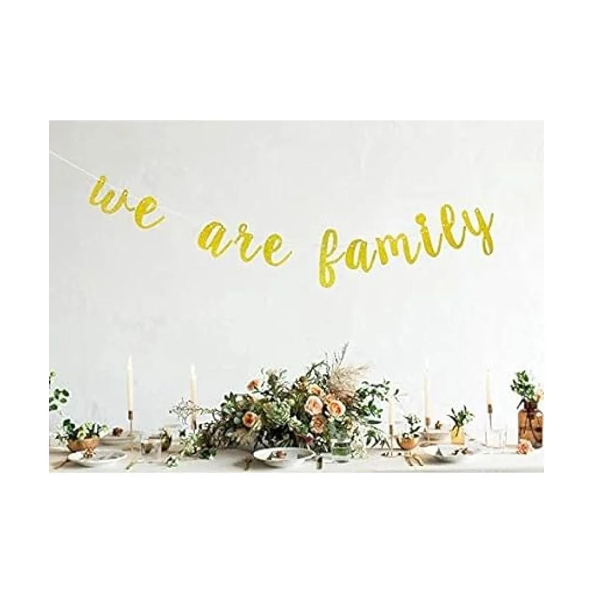 Lo que obtendrás: 1 pancarta dorada con purpurina We are Family, diseño único que te da la sensación especial del día especial.