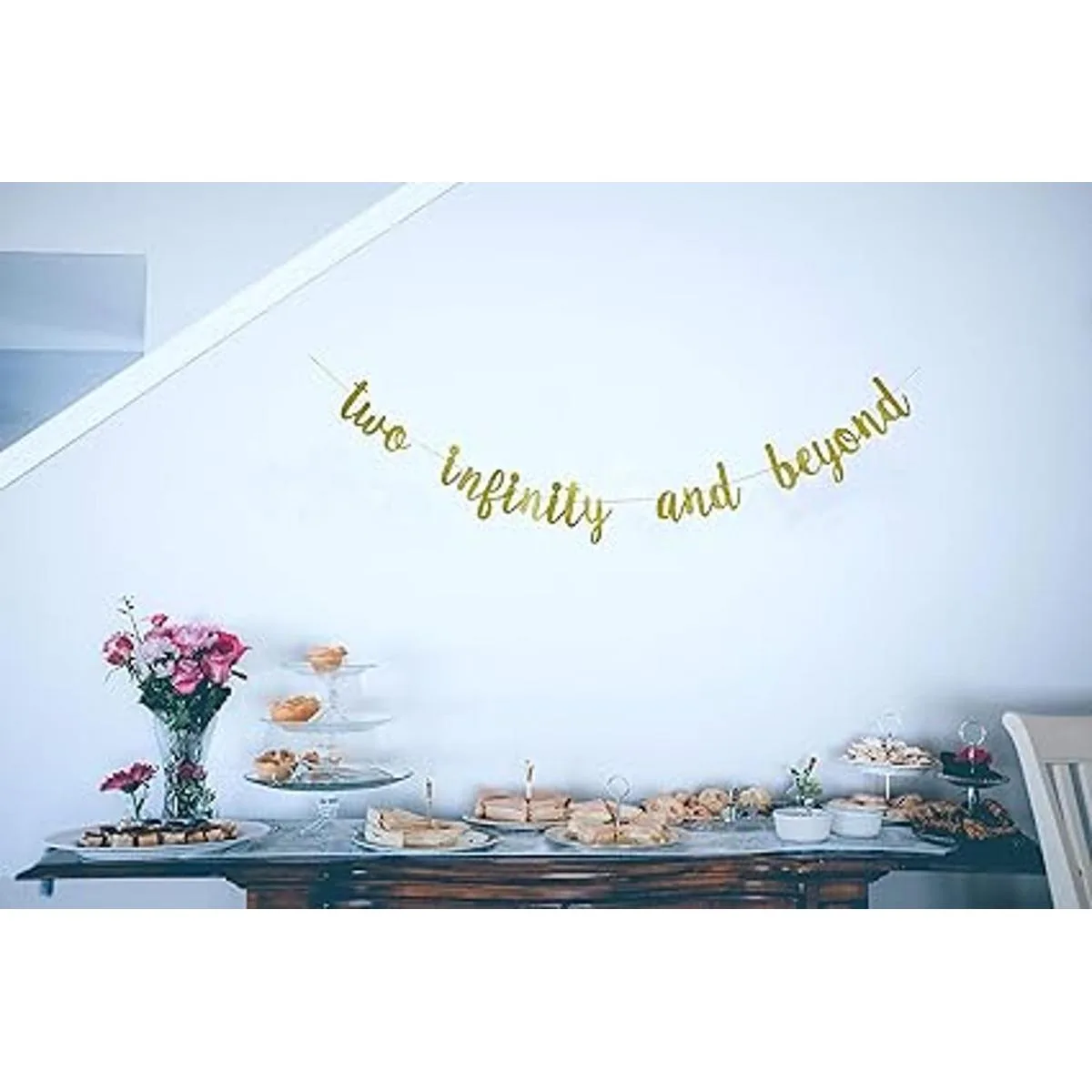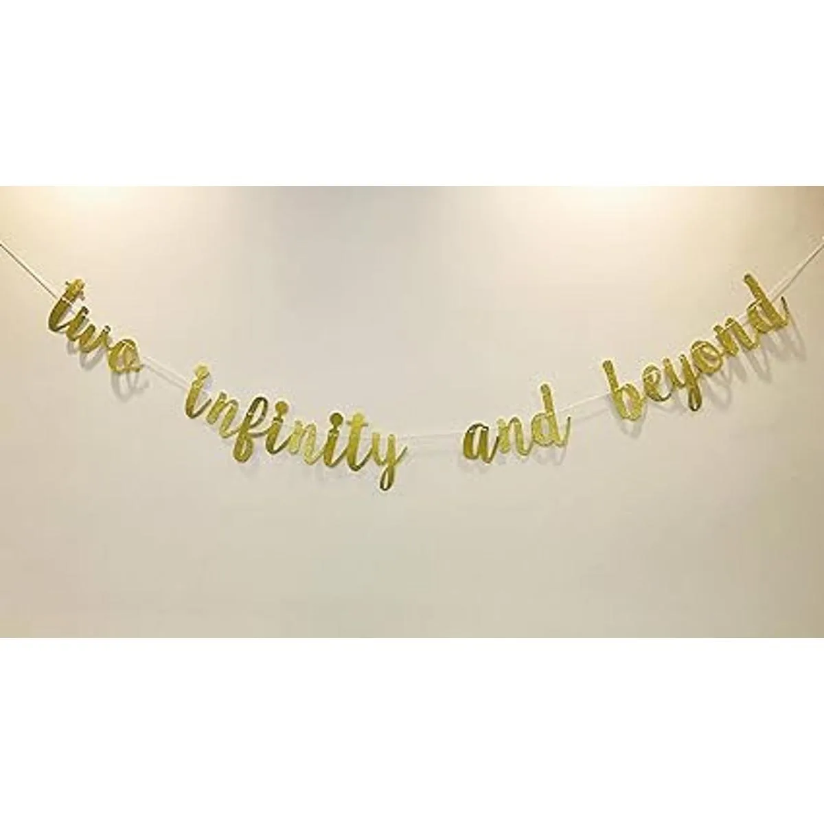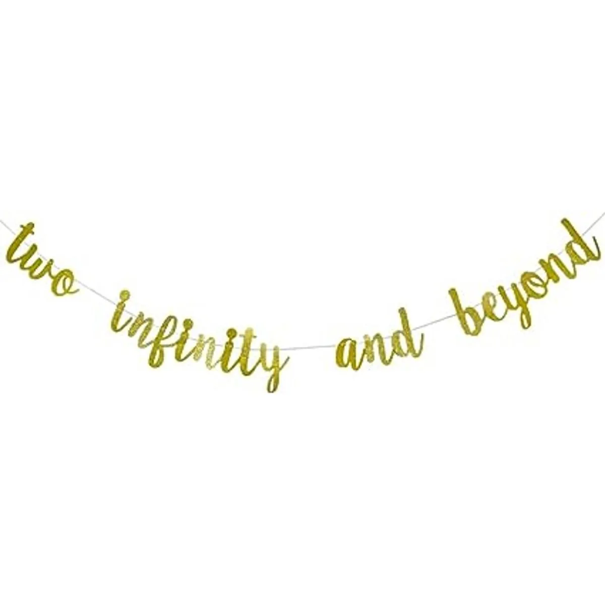 Bandera de cumpleaños de 2 años de edad con diseño de dos infinitos y más allá, bandera de 2 años de edad, 2 cumpleaños con purpurina guirnalda para foto para niña bebé Bday