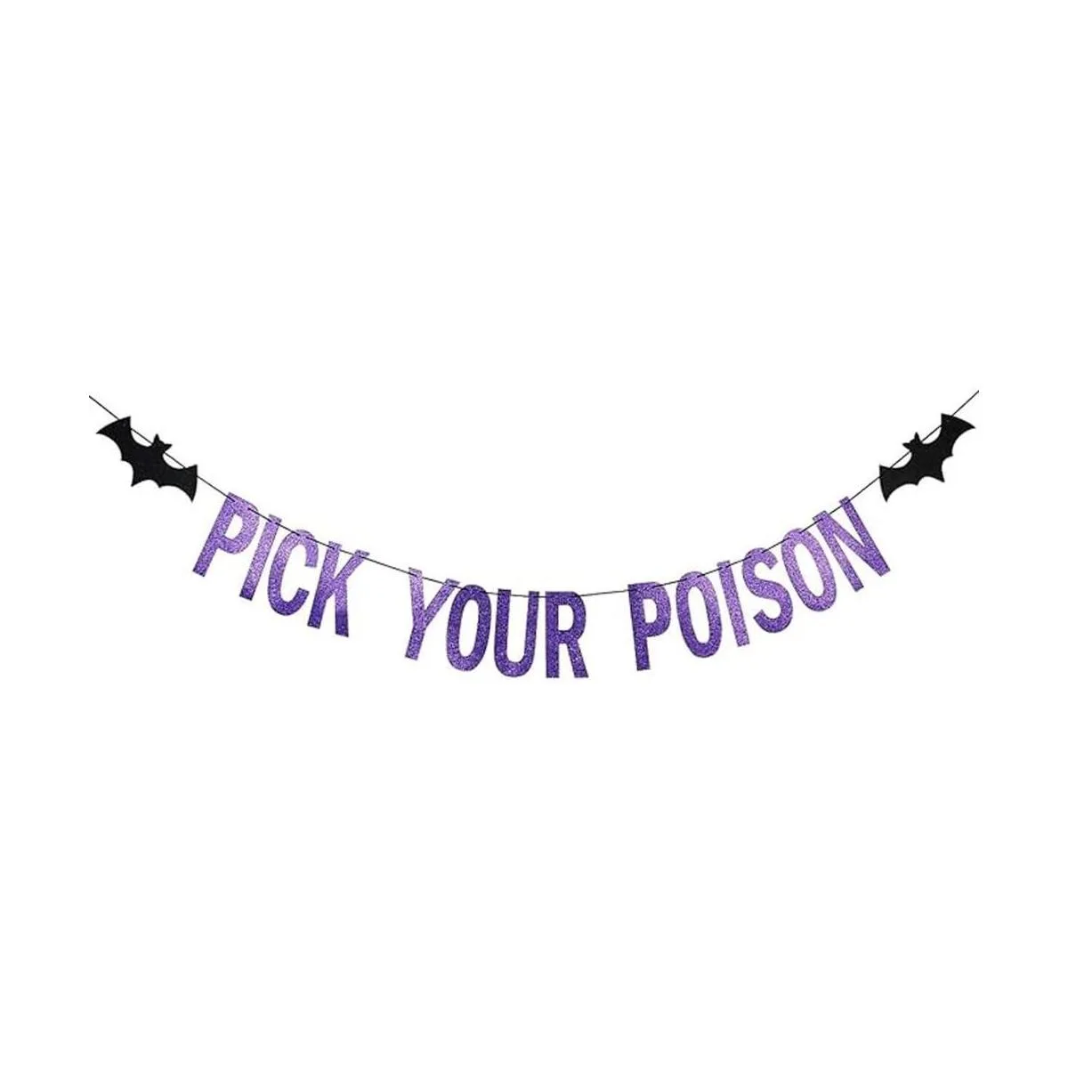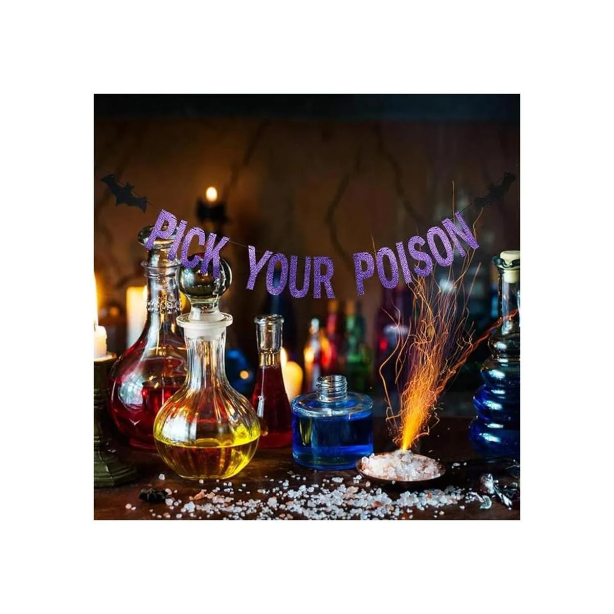 Lo que obtendrás: 1 pancarta de veneno con purpurina morada, perfecta para decoración de fiesta de Halloween, vale la pena comprarla