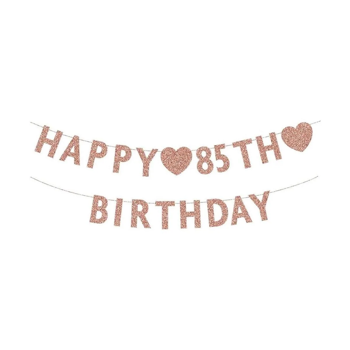 Bandera de oro rosa 85 cumpleaños, decoración de fiesta con purpurina, 85 años, suministros