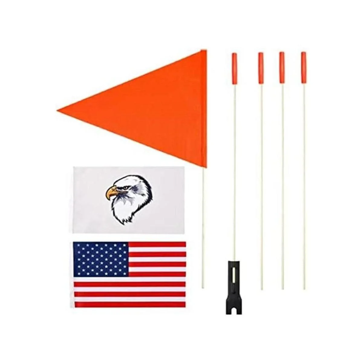 Banderas de bicicleta mejoradas con poste de 6 pies de alta visibilidad con poste de bandera de fibra de vidrio resistente, bandera naranja, águila y bandera estadounidense