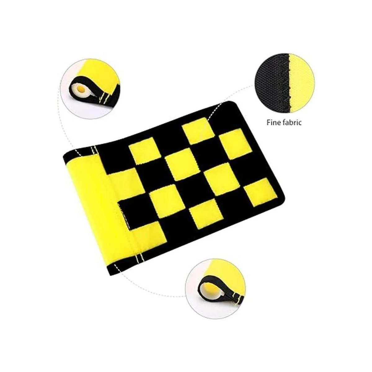 Banderas de golf, banderas de golf verdes, nailon sólido y entrenamiento a cuadros, banderas verdes, banderas de golf portátiles para interiores y exteriores, 8.7 x 6 pulgadas amarillonegro