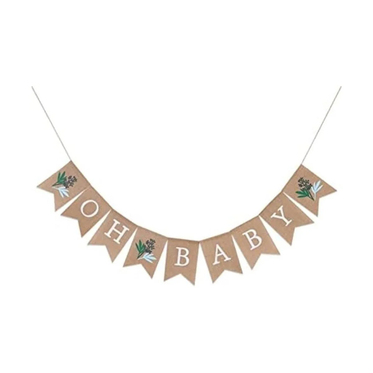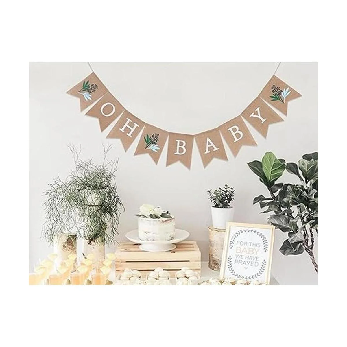 El bebé está llegando: nuestra pancarta rústica de arpillera Oh Baby es la decoración perfecta para la decoración de tu fiesta de baby shower. Tener un bebé es una experiencia que cambia la vida y queremos ayudarte a celebrar. Dale la bienvenida a tu bebé con estilo con estas adorables decoraciones vegetales