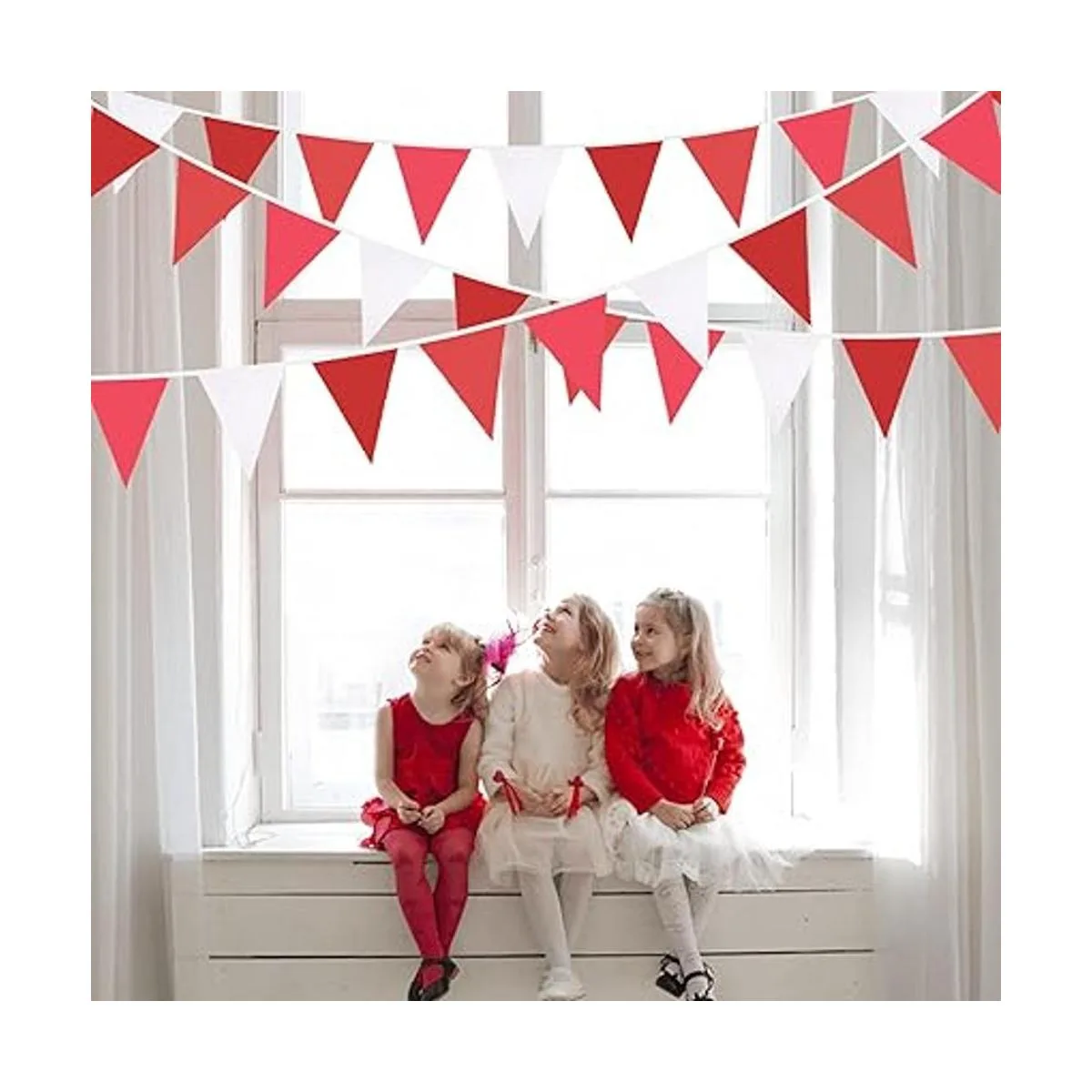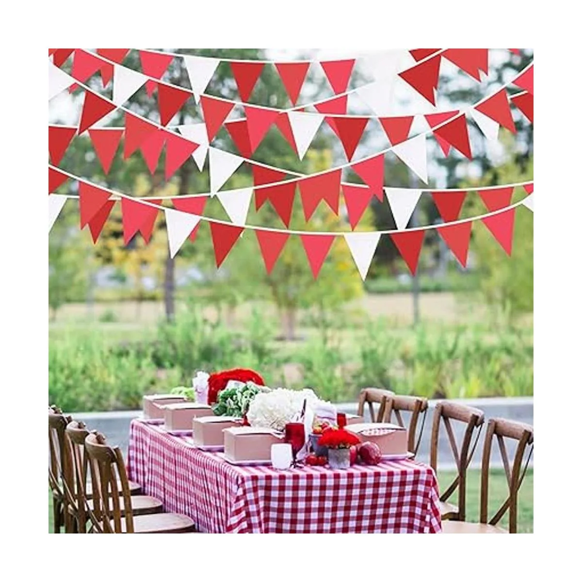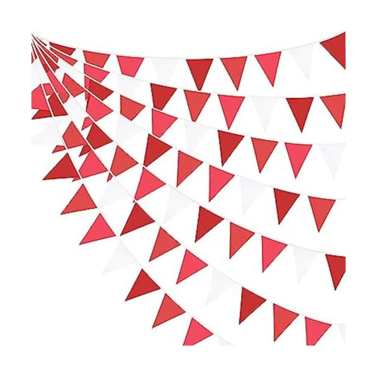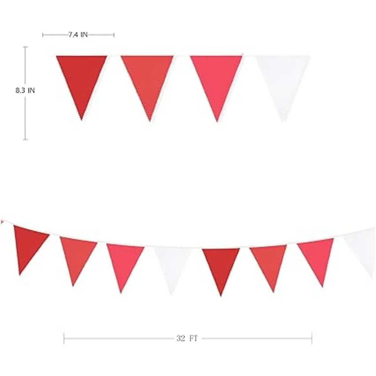 El paquete incluye: 1 guirnalda de tela en colores rojo, rojo claro y blanco, con 36 banderas de 32.8 ft. Tamaño de la bandera: 7.4 pulgadas de ancho x 8.3 pulgadas de alto.