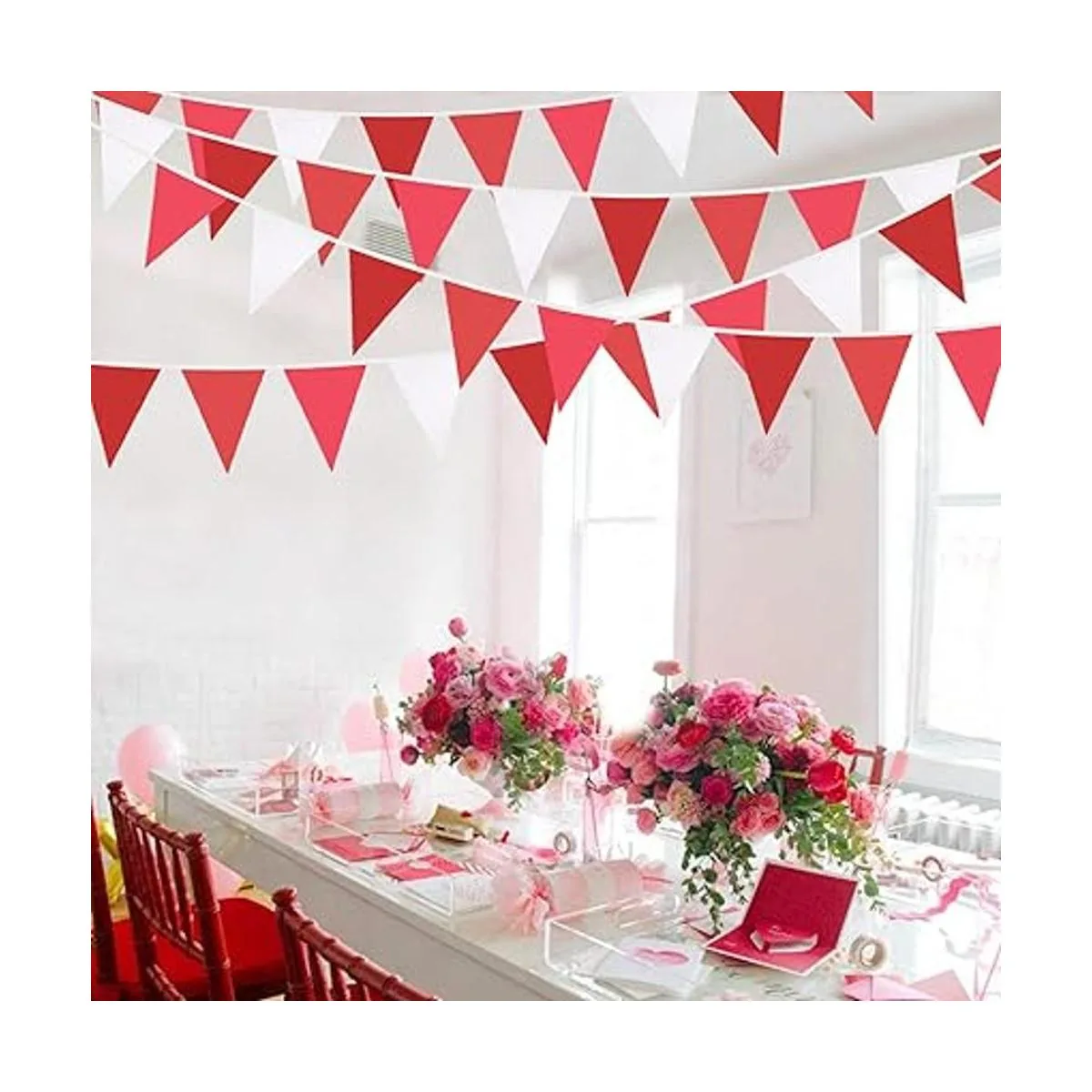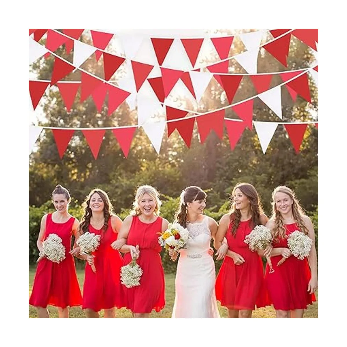 Banderín rojo de 32 pies con banderines de tela triangular, banderines para boda, compromiso, despedida de soltera, aniversario, despedida de soltera, fiesta de cumpleaños, hogar, jardín, decoración de festivales