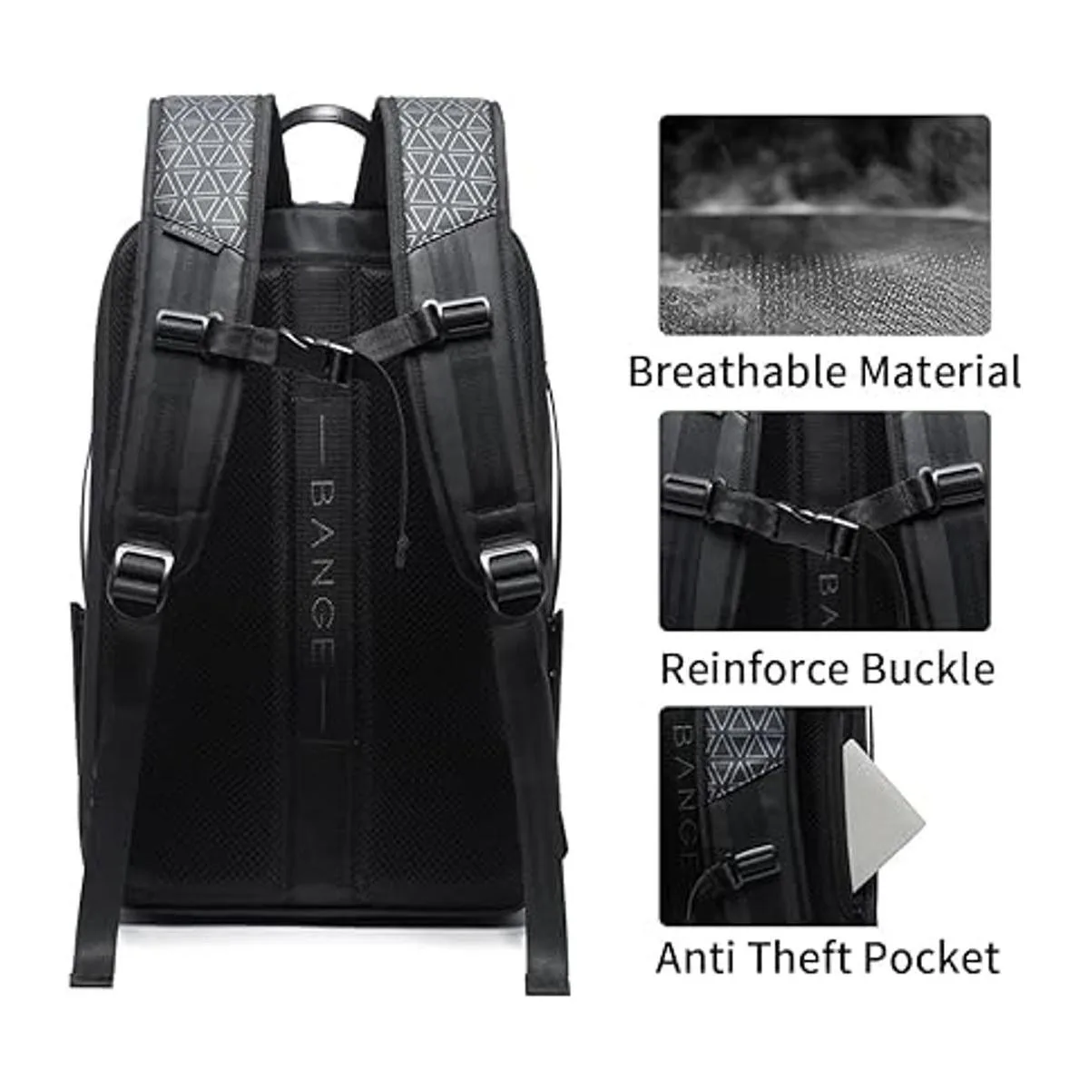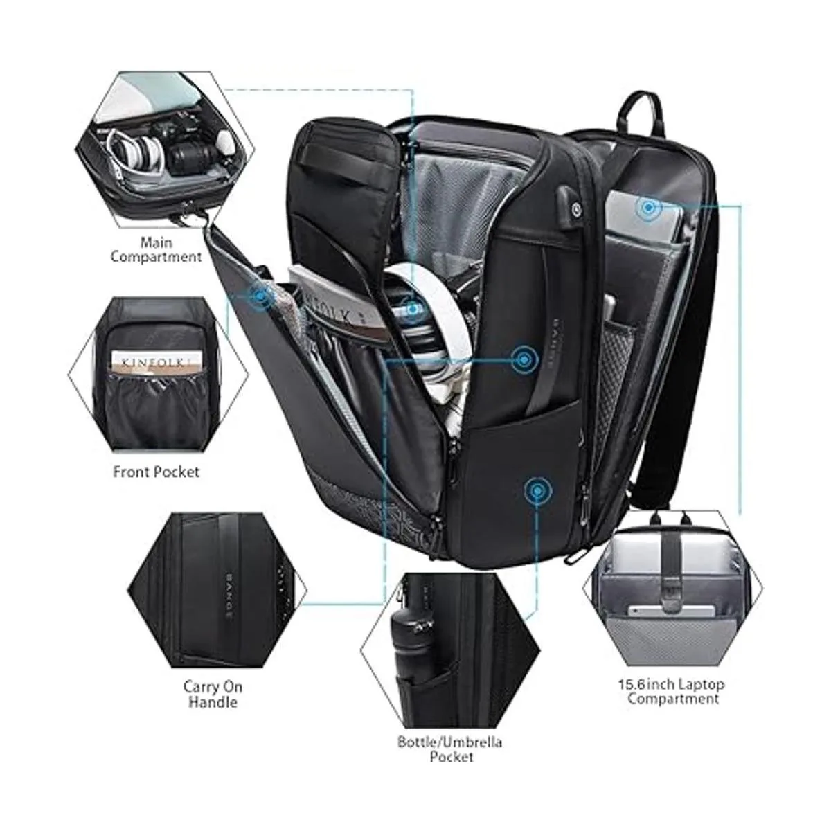 BANGE Mochilas de viaje, mochila de transporte para fin de semana, mochila impermeable para laptop de negocios para hombres de 15.6 pulgadas, NegroS, M, Cremallera