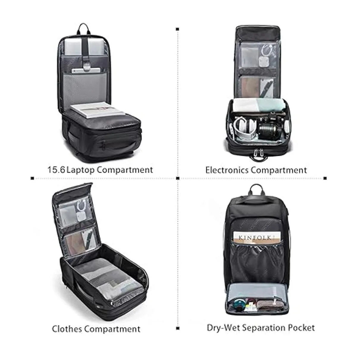 Mochila para laptop de 15.6 pulgadas: la mochila de viaje de 35 L tiene un compartimento separado para laptop, que puede contener laptop de 15.6 pulgadas y proteger el portátil de movimientos. Con material de PVC impermeable de alta calidad, tu portátil puede evitar la humedad en los días de lluvia.