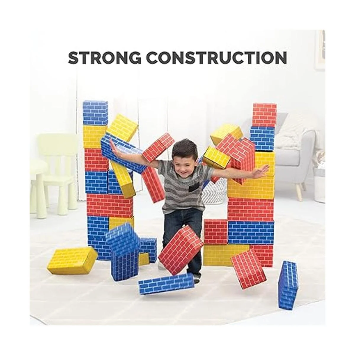 Construcción fuerte y segura: tablero corrugado 32ECT con bordes redondeados aptos para niños que proporciona resistencia y seguridad para horas de juego. El diseño sin plomo está certificado por la especificación de seguridad del consumidor estándar F963. A partir de 3 años