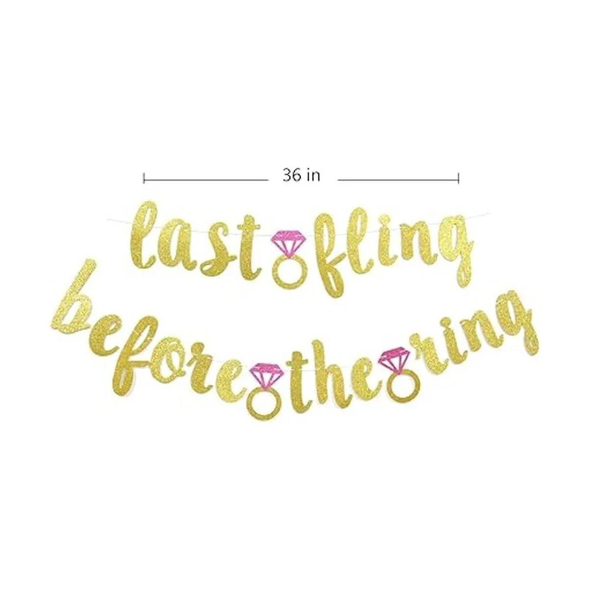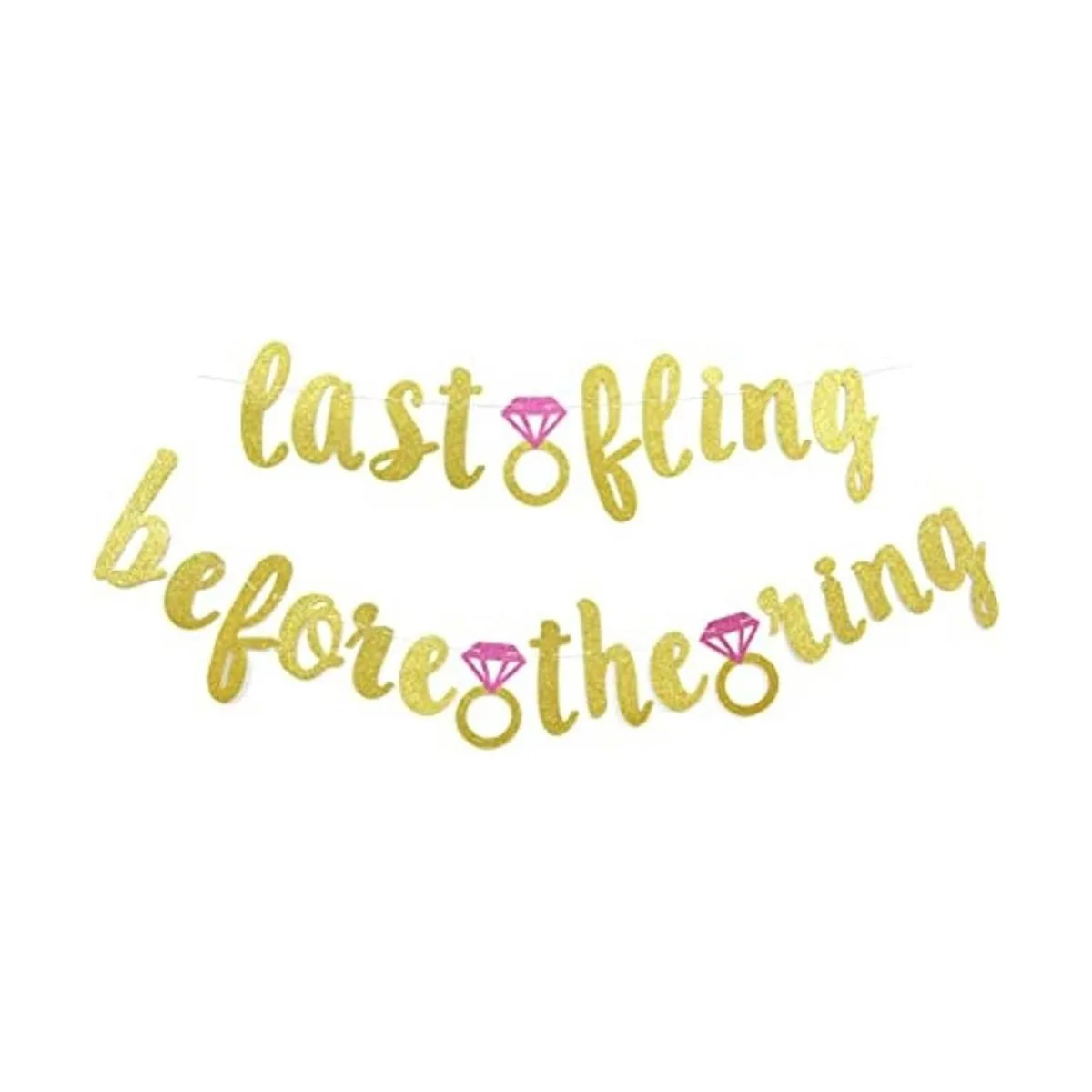 Banner con purpurina dorada de Last Fling Before the Ring Banner de despedida de soltera