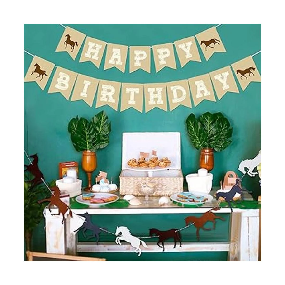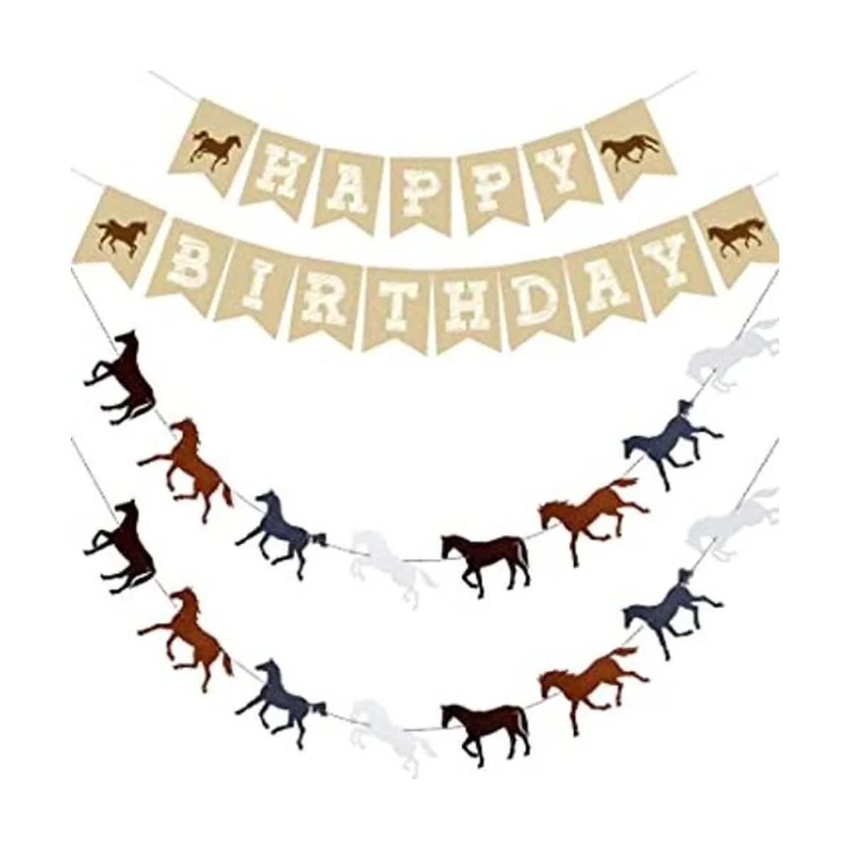 Banner de cumpleaños de caballos, decoraciones de fiesta de caballos de carreras, guirnalda de banderines de papel, decoración temática de granja para regalo de cumpleaños, boda, fiesta, decoración colgante premontada