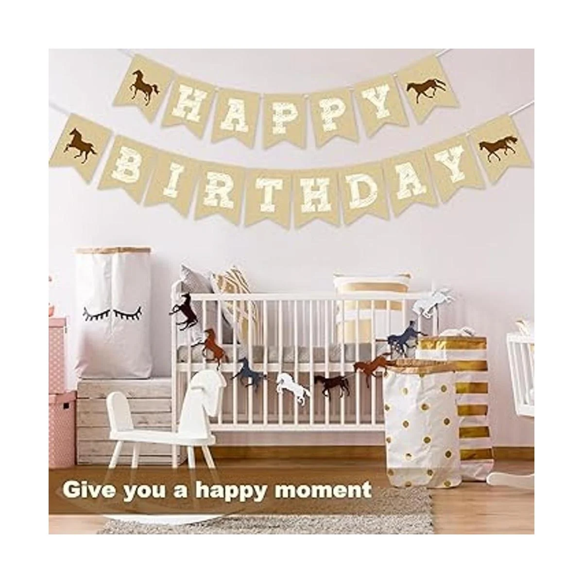 Tamaño de decoración adecuado: el tamaño de la pancarta de fieltro es de aproximadamente 78.7 x 5.9 in, el logotipo de caballo está en diferentes colores claros, negro, blanco, marrón y gris; el tamaño de una sola pancarta es de 6 x 4.5 pulgadas, la bandera de feliz cumpleaños está impresa con un patrón de lino y un bonito diseño de fuentes, imagen vívida del patrón de caballo