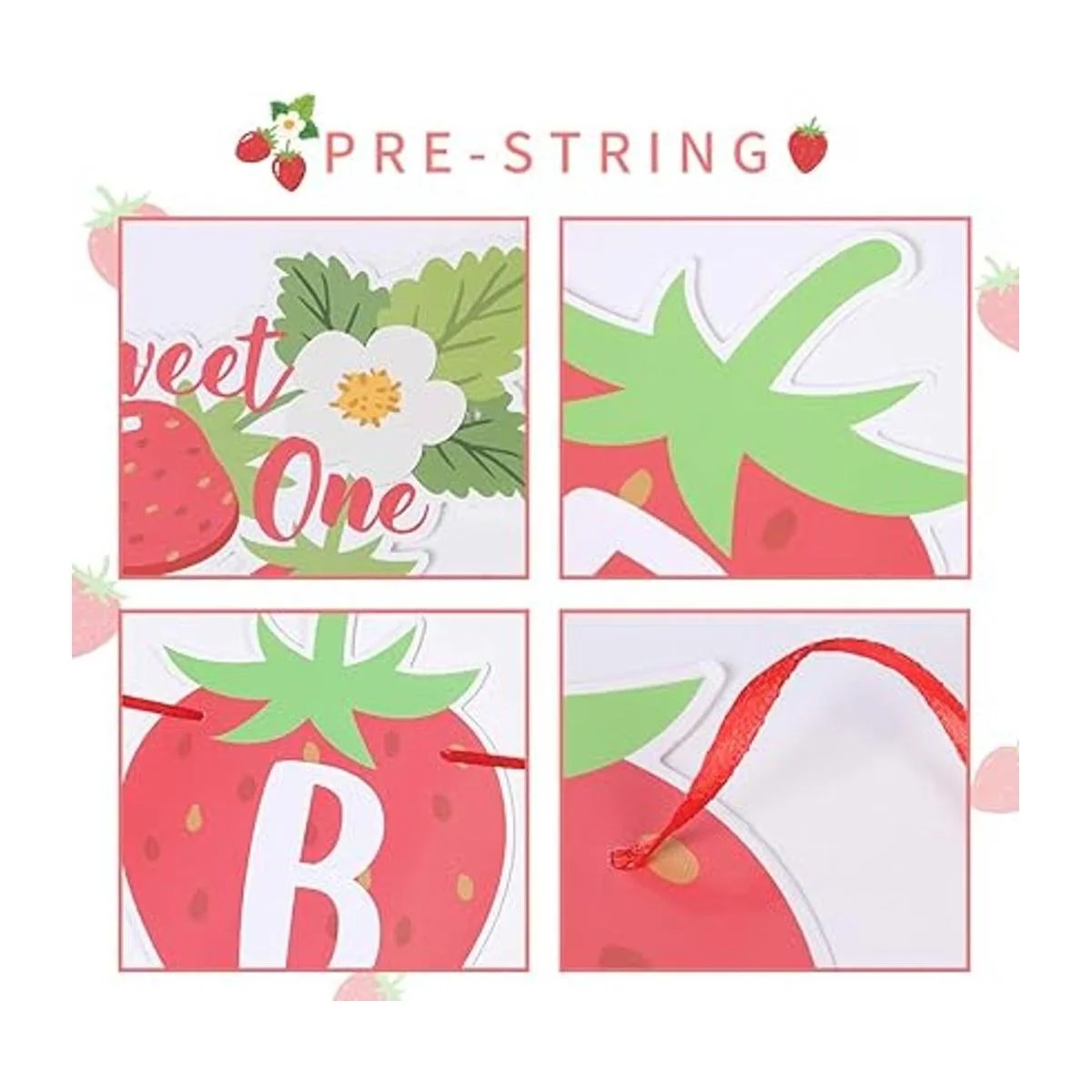 Amplias aplicaciones: la guirnalda de papel es de color rojo y verde se puede aplicar a fiestas de cumpleaños, baby shower, ceremonia de boda, festivales, carnavales y más ocasiones. Más adecuado para decoración de fiesta de cumpleaños temática de fresa de niña.