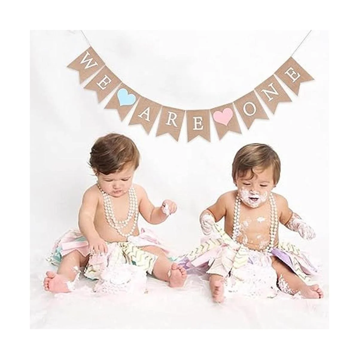 Banner de gemelos para 1er cumpleaños We Are One Banner, Twins Fiesta de cumpleaños, Twins Frist Decoración de cumpleaños, Niñas Niños Primer Cumpleaños, Foto Prop