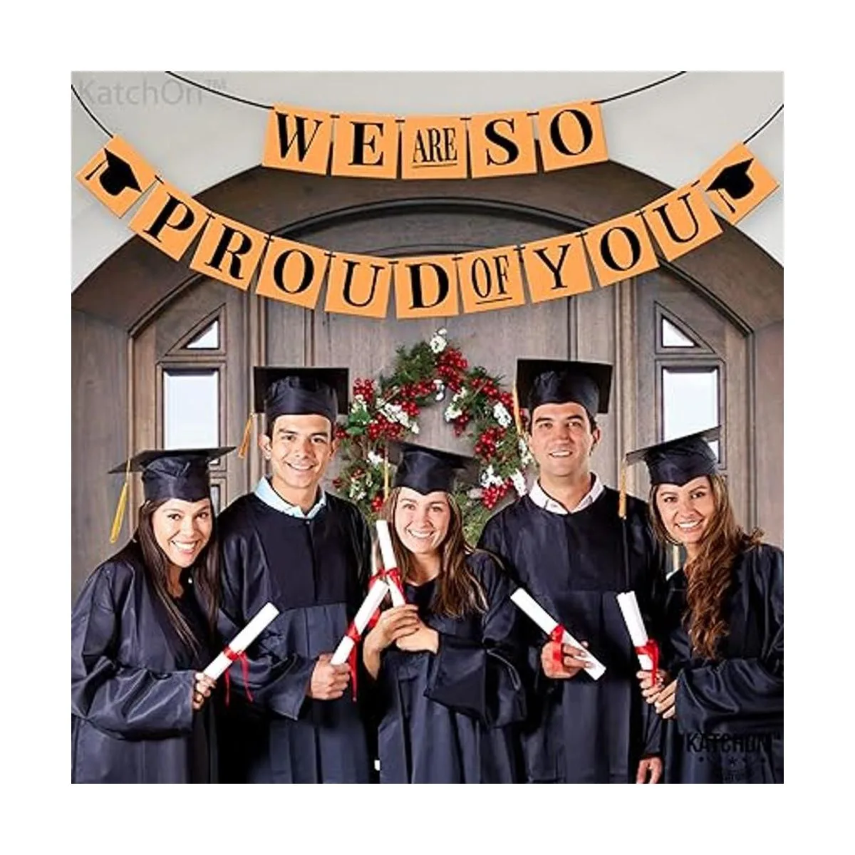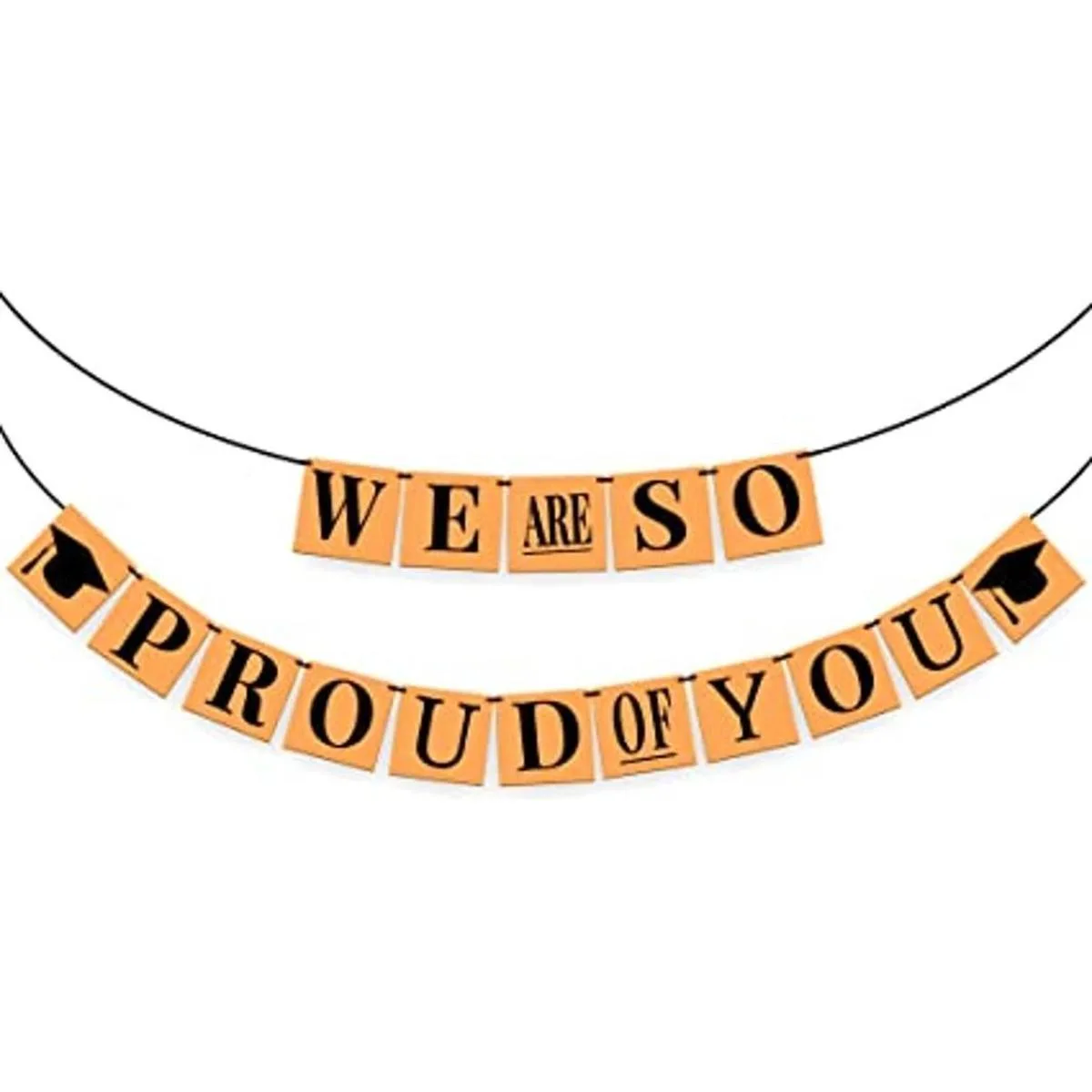 Banner de graduación We Are So Proud Of You no DIY, 12 pies, pancarta de graduación con texto en inglés We Are So Proud Of You, decoraciones de graduación en preescolar, decoraciones de coche para desfile de graduación, decoraciones de fiesta de graduación naranja