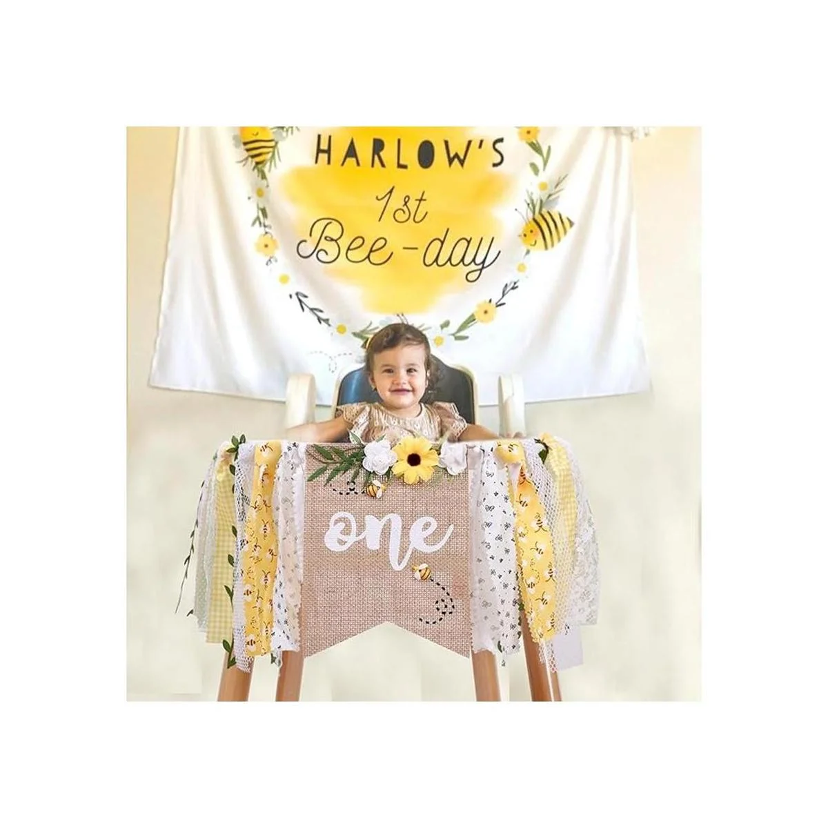 Banner para silla alta con tema de abeja de primer cumpleaños, pancarta de abeja de bebé, decoración de fiesta de cumpleaños de abeja, decoración de pancarta de silla alta para el primer día de la abeja, pancarta de silla alta para niña de primer cumpleaños, pancarta de silla alta para primer cumpleaños de niña