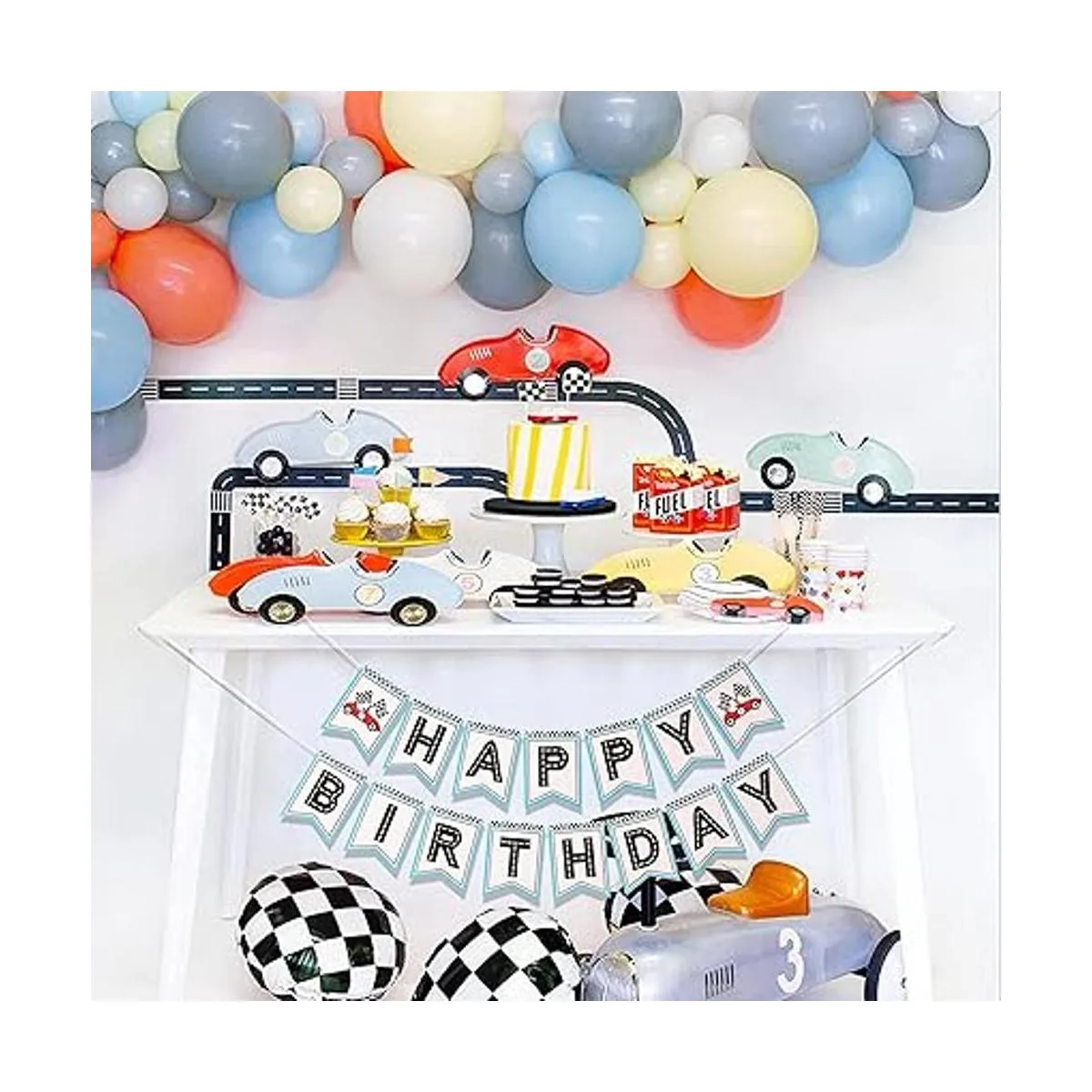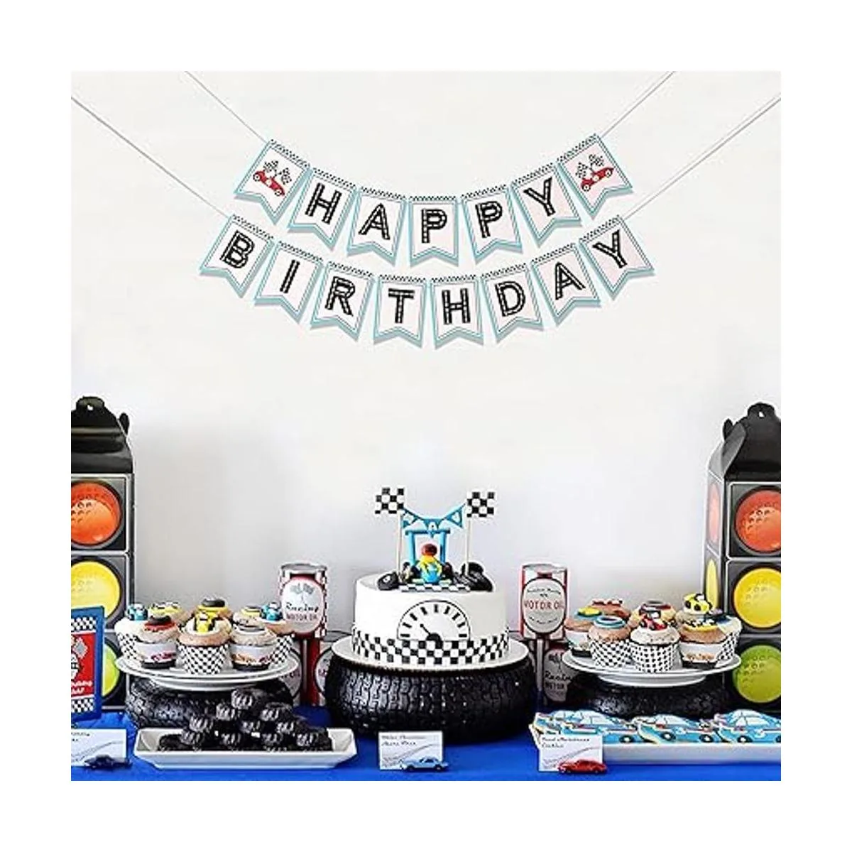 Disfruta de la fiesta: invita a amigos y familiares a la fiesta de cumpleaños de tu bebé después de un duro trabajo, utiliza esta hermosa pancarta de feliz cumpleaños temática de carreras, puedes tomar fotos con tus amigos para grabar esta maravillosa. También se puede utilizar como decoración para la habitación después de que termine la fiesta.