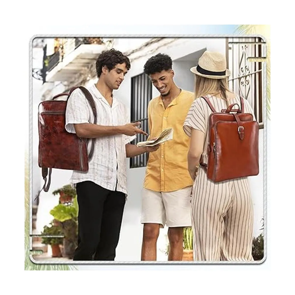 Mochila de cuero para mujer: Está hecha de cuero importado de Italia, herrajes de aleación de zinc inoxidables y forro de sarga de poliéster de algodón duradero. Tiene cuero degradado de doble color y pintura de borde resistente al desgaste para crear un aspecto vintage.
