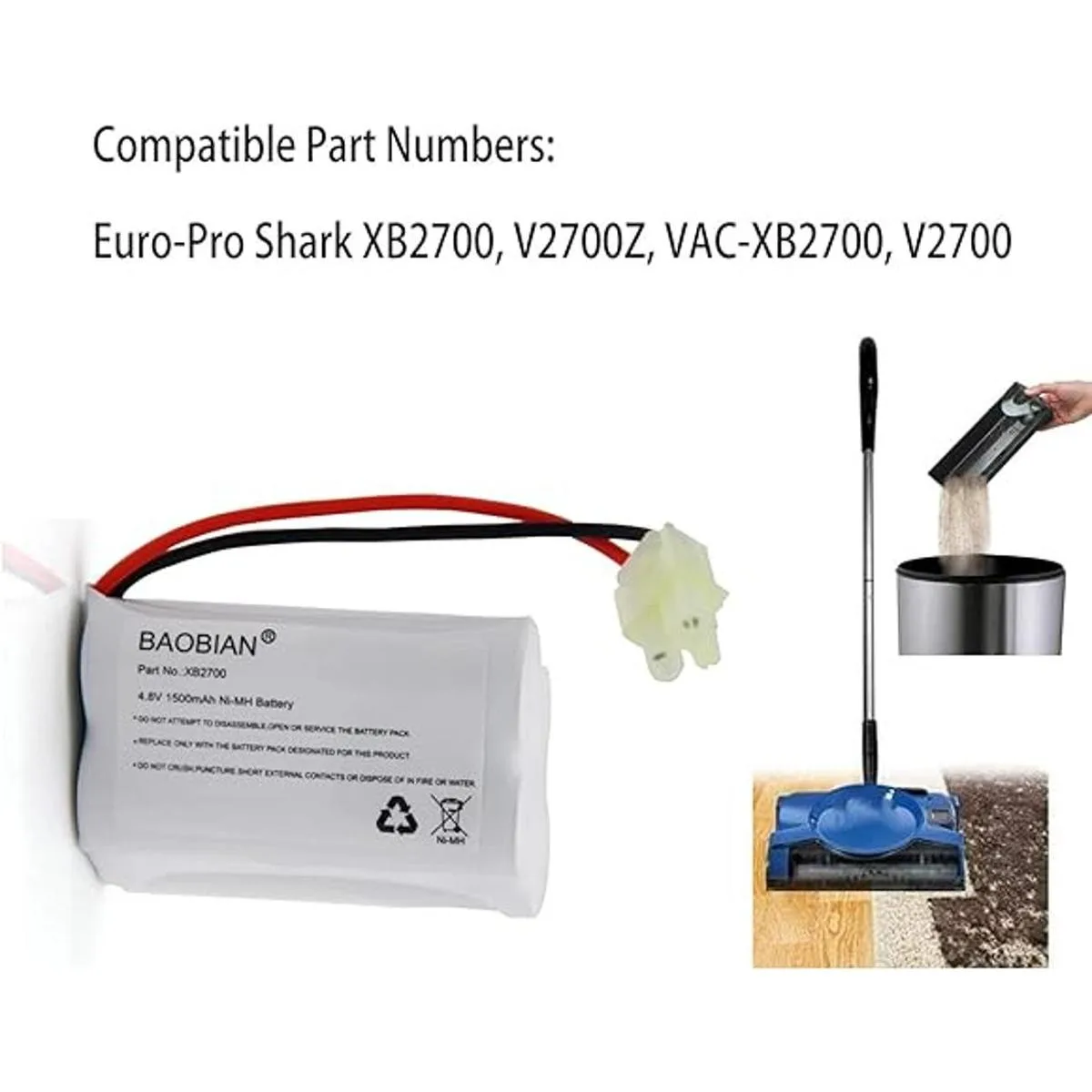 BAOBIAN XB2700 V2930 V2700Z VACXB2700 V2700 Batería de repuesto 4.8V 1500mAh NiMh Compatible con Euro Pro Shark Aspiradora Alfombra y Alfombra Barredora