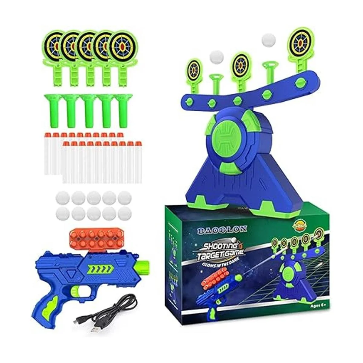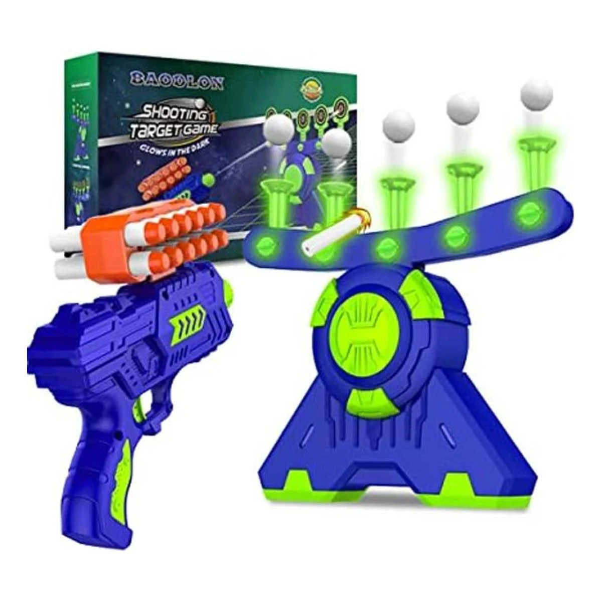 BAODLON Juego de disparos para niños de 5, 6, 7, 8, 9, 10 años de edad, niños Objetivo de bola flotante que brilla en la oscuridad con pistola de juguete de dardo de espuma, 10 bolas5 objetivos Regalo ideal, compatible con pistola de juguete