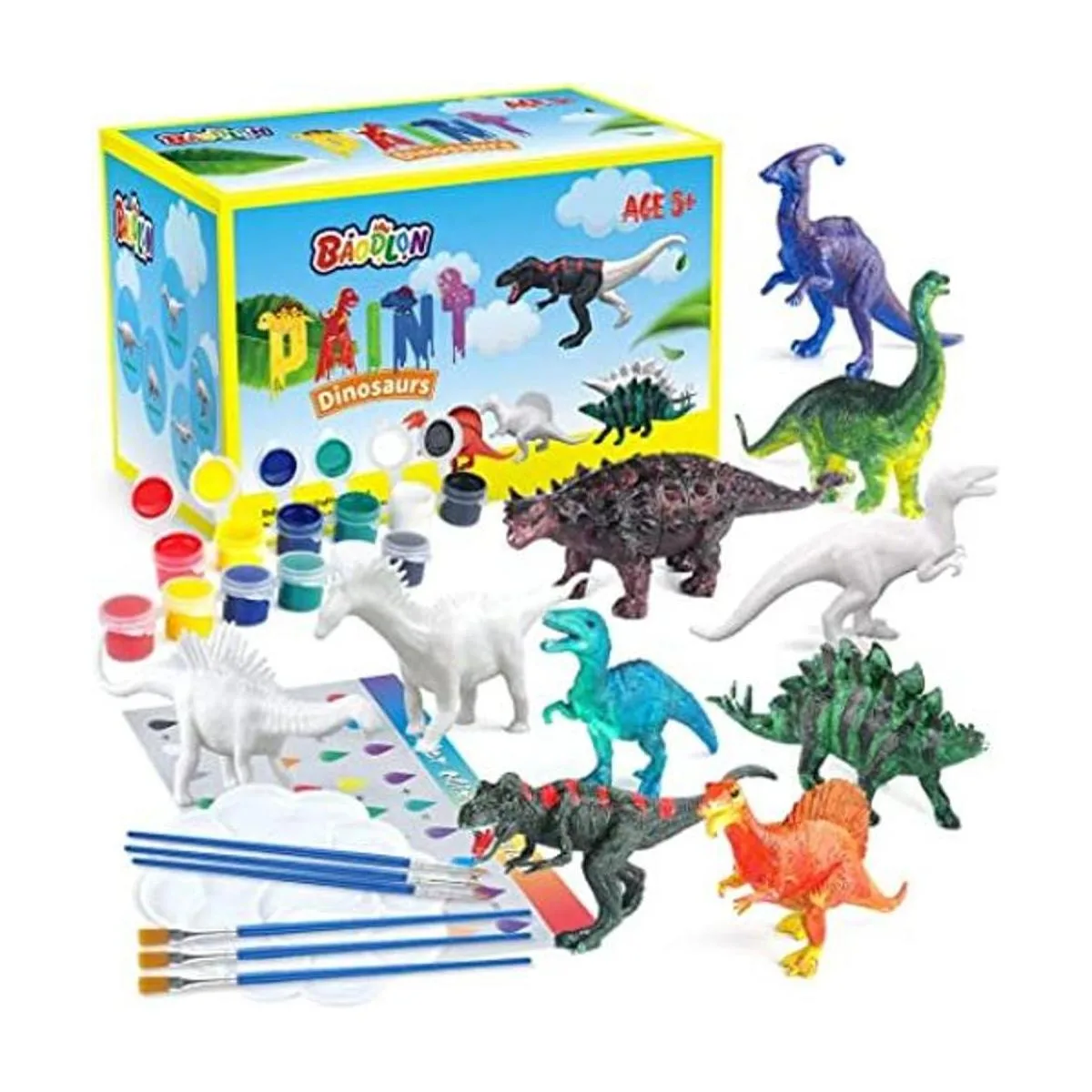 Baodlon Juego de manualidades para niños, kit de pintura de juguetes de dinosaurio, 10 figuras de dinosaurio, decora tu dinosaurio, crea un mundo de dino, juguetes de pintura para niños de 5, 6, 7 y 8 años