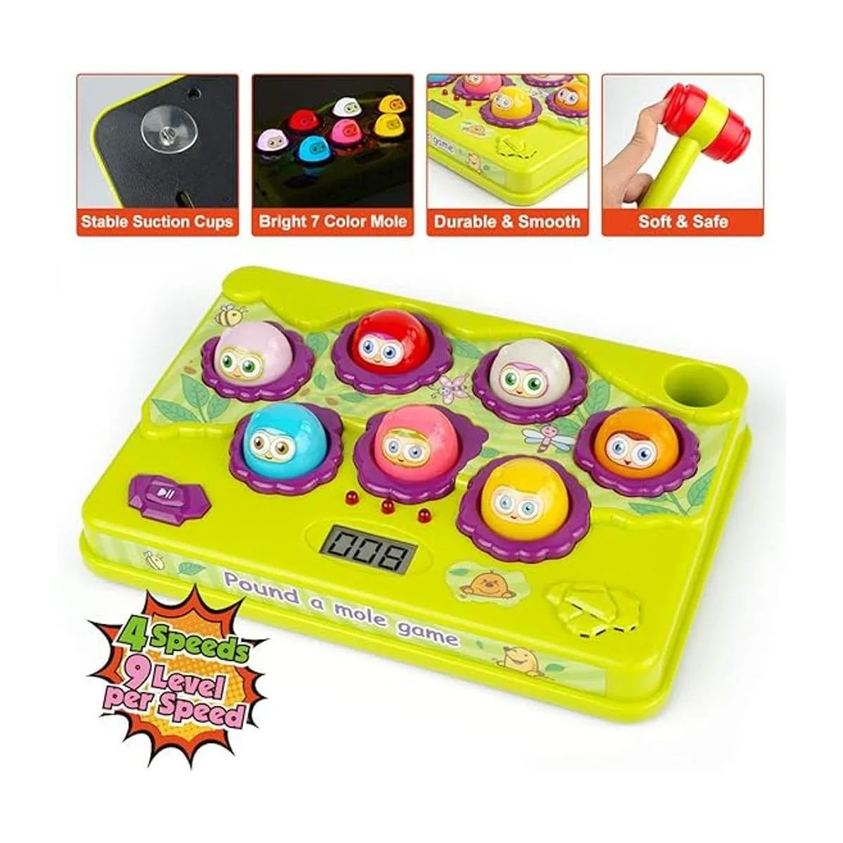 Juego múltiple y divertido: el juego PoundaMole cuenta con 4 velocidades, 9 niveles por velocidad. Un total de 36 niveles diferentes de cambio de velocidad aumentarán la dificultad a medida que progresas. Póngalos en las cabezas con martillos suaves antes de que la luz se apague. Cooperar y tomar turnos jugando juegos de topos con amigos y compite para ver quién obtiene la puntuación más alta.
