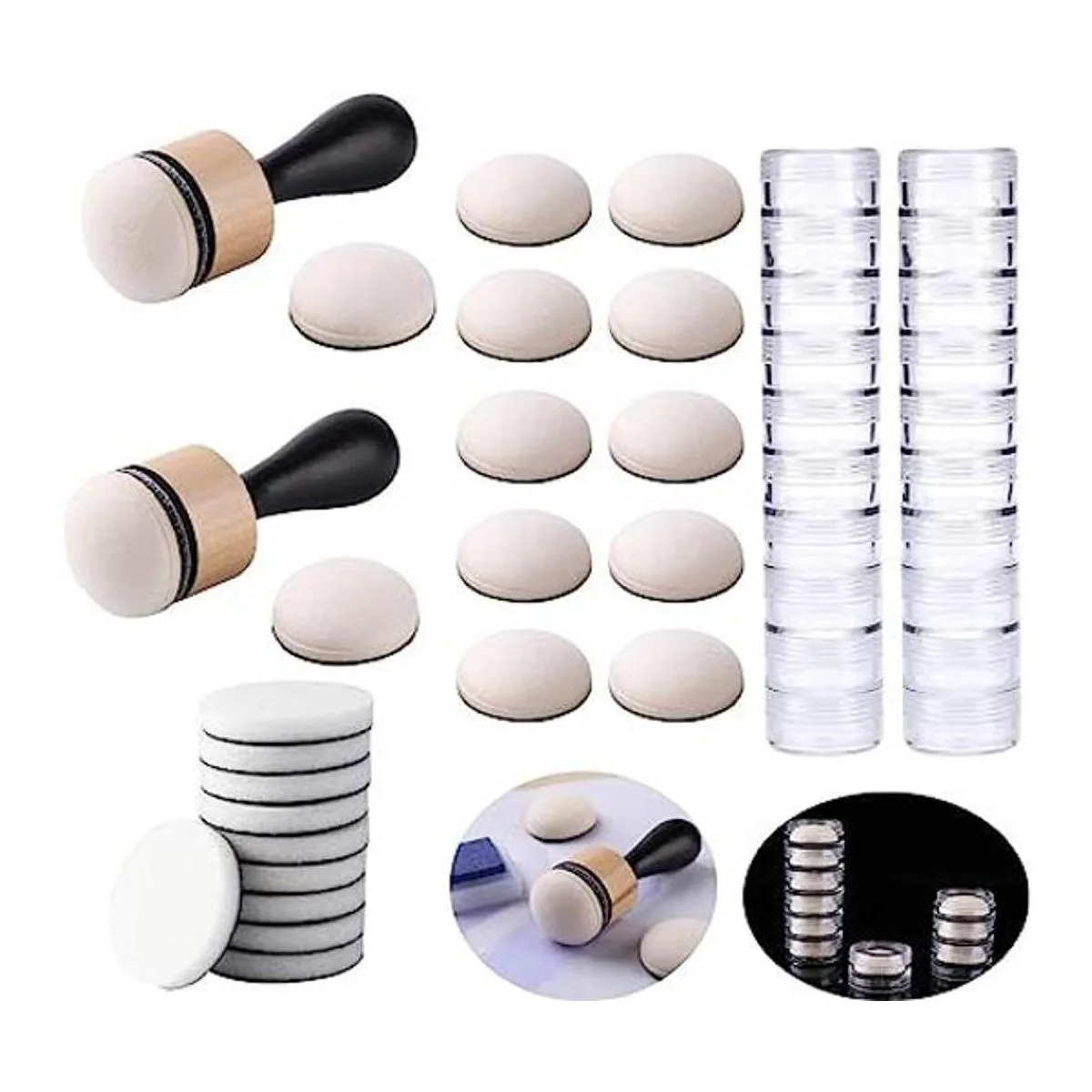 Herramienta circular de mezcla de tinta: pincel de pintura de esponja de diseño profesional, utilizado para álbumes de recortes de espuma, pintura, suministros de arte, herramientas de procesamiento de tinta, plantillas de grabado en relieve y hacer manualidades hechas a mano de mejor aspecto, caja de almacenamiento redonda para cuentas, botones Pequeños accesorios de joyería, cabezales de esponja de repuesto de parte superior plana.