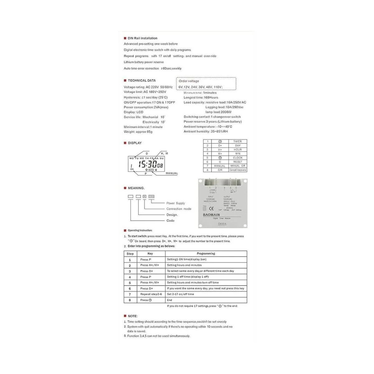 Baomain CN101A DC 12V 16A Amps LCD digital Power Programable Time Rellay Switch Soporte 17 veces Programa semanal diario