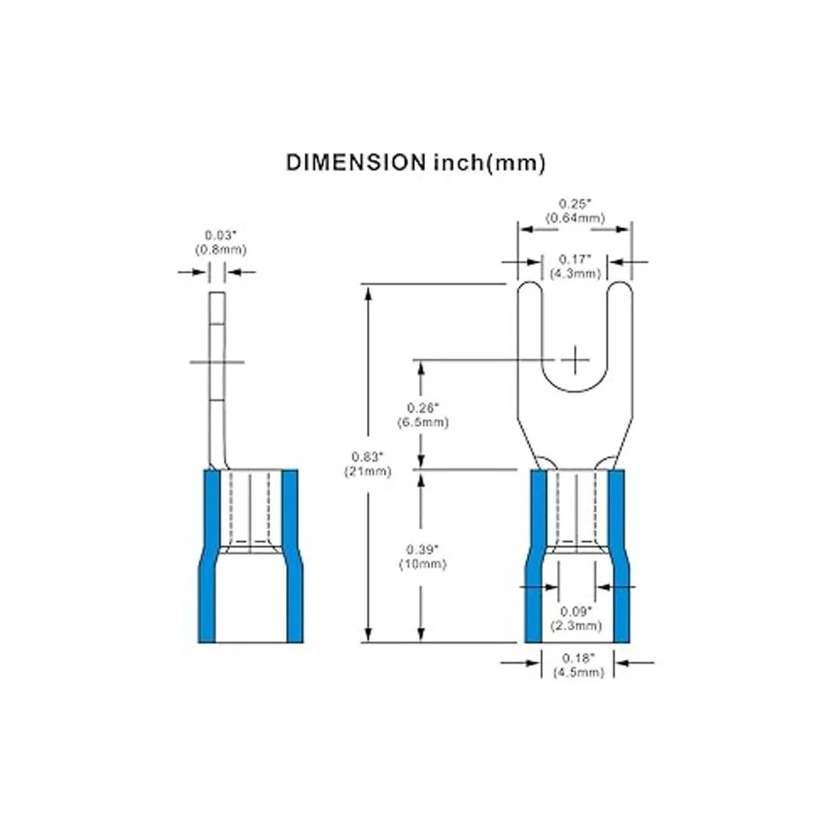 Baomain Conector de cable de horquilla aislado, terminal de engarzado eléctrico 1416AWG 1,52,5 mmq, Estados Unidos 8, paquete de 100