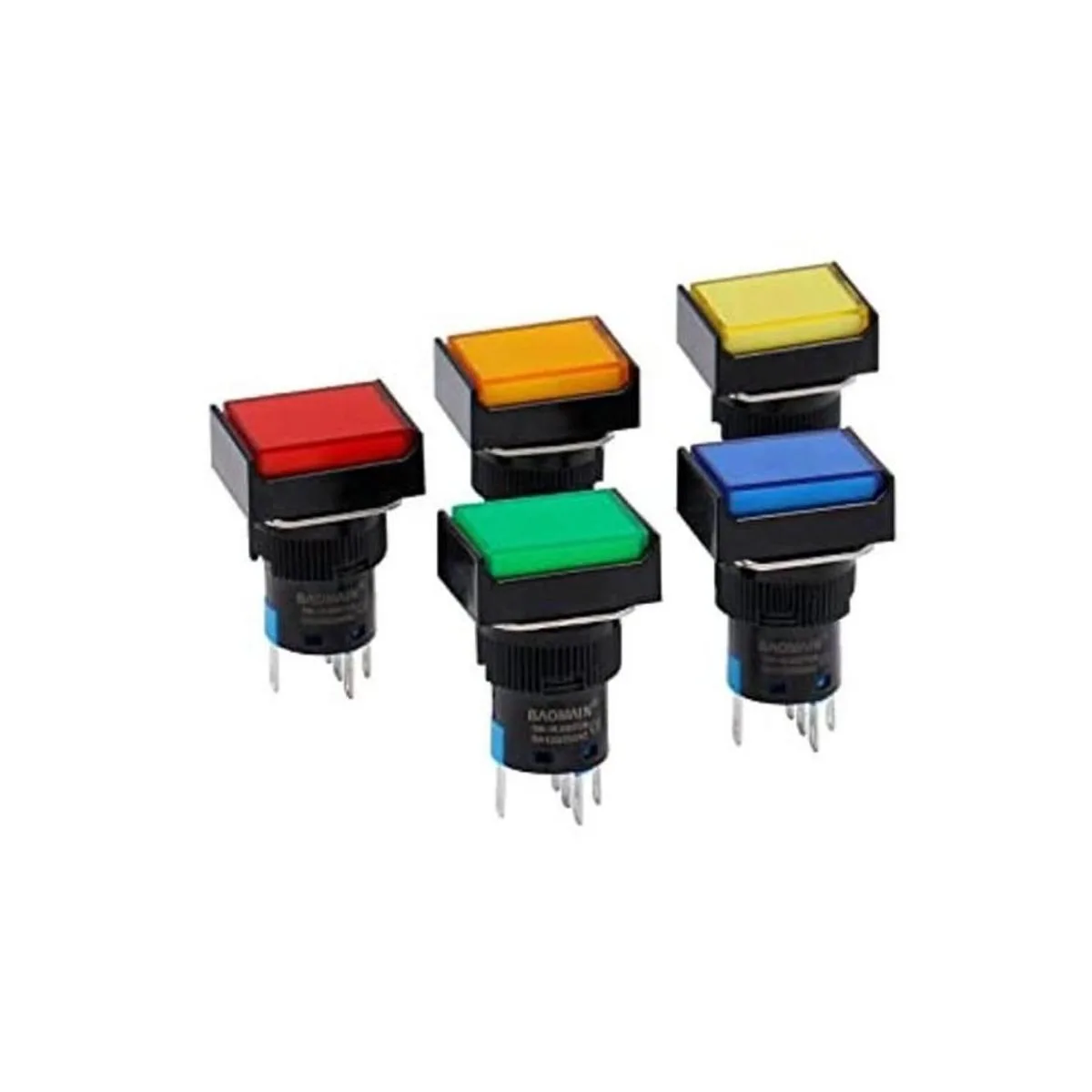 Baomain Interruptor de botón de 0.630 in, tapa rectangular momentánea, lámpara LED roja, amarillo, naranja, azul, verde, luz CC, 12 V, SPDT, 5 pines, paquete de 5