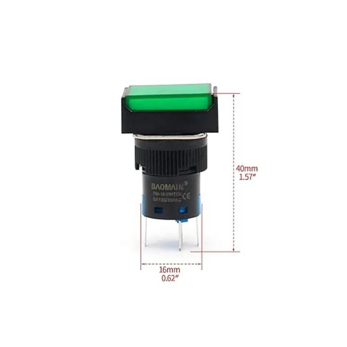 Baomain Interruptor de botón de 0.630 in tapa rectangular