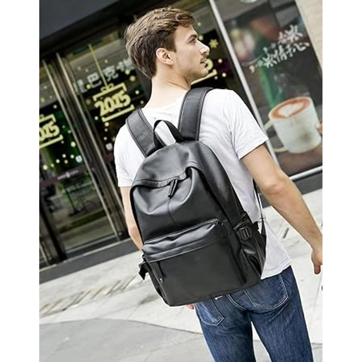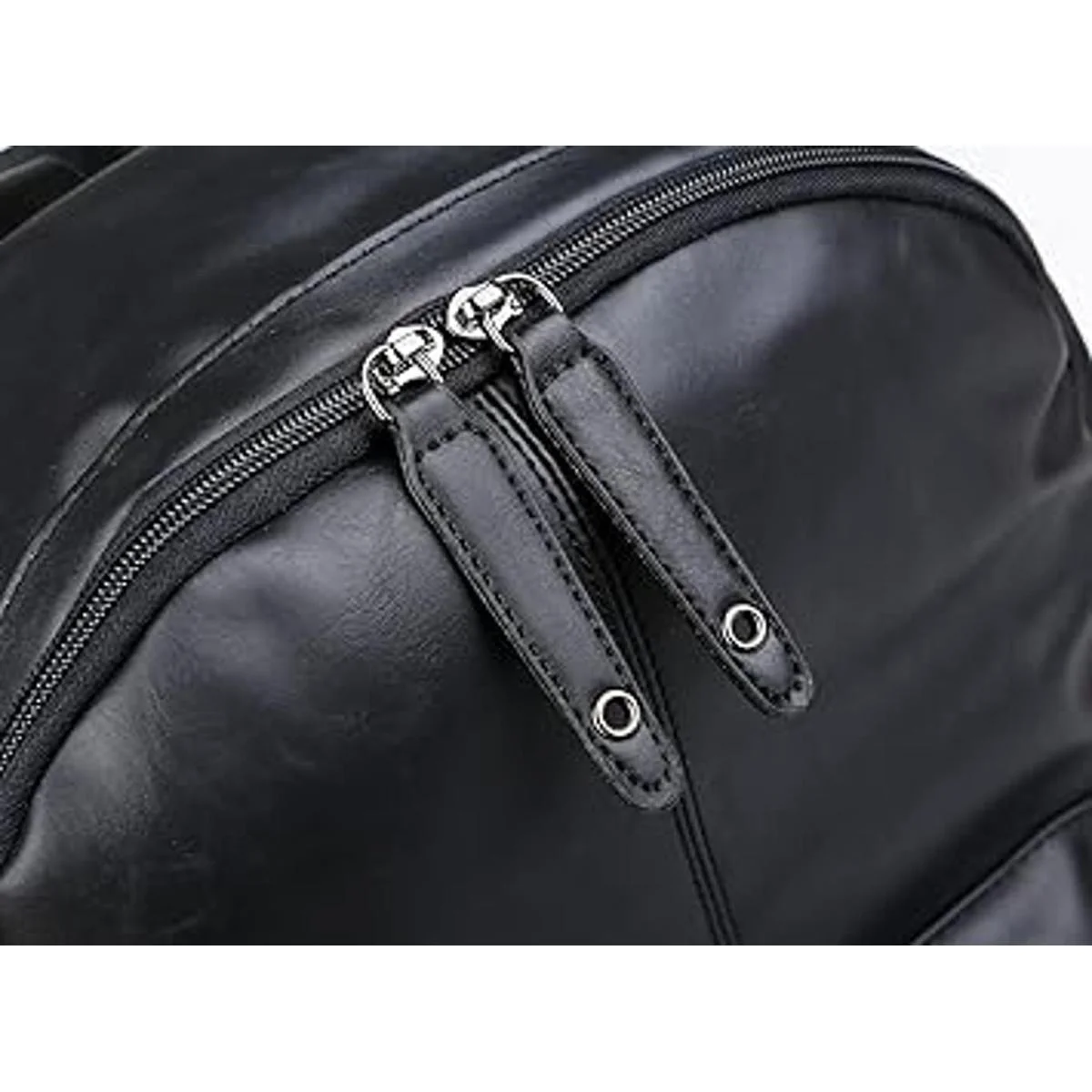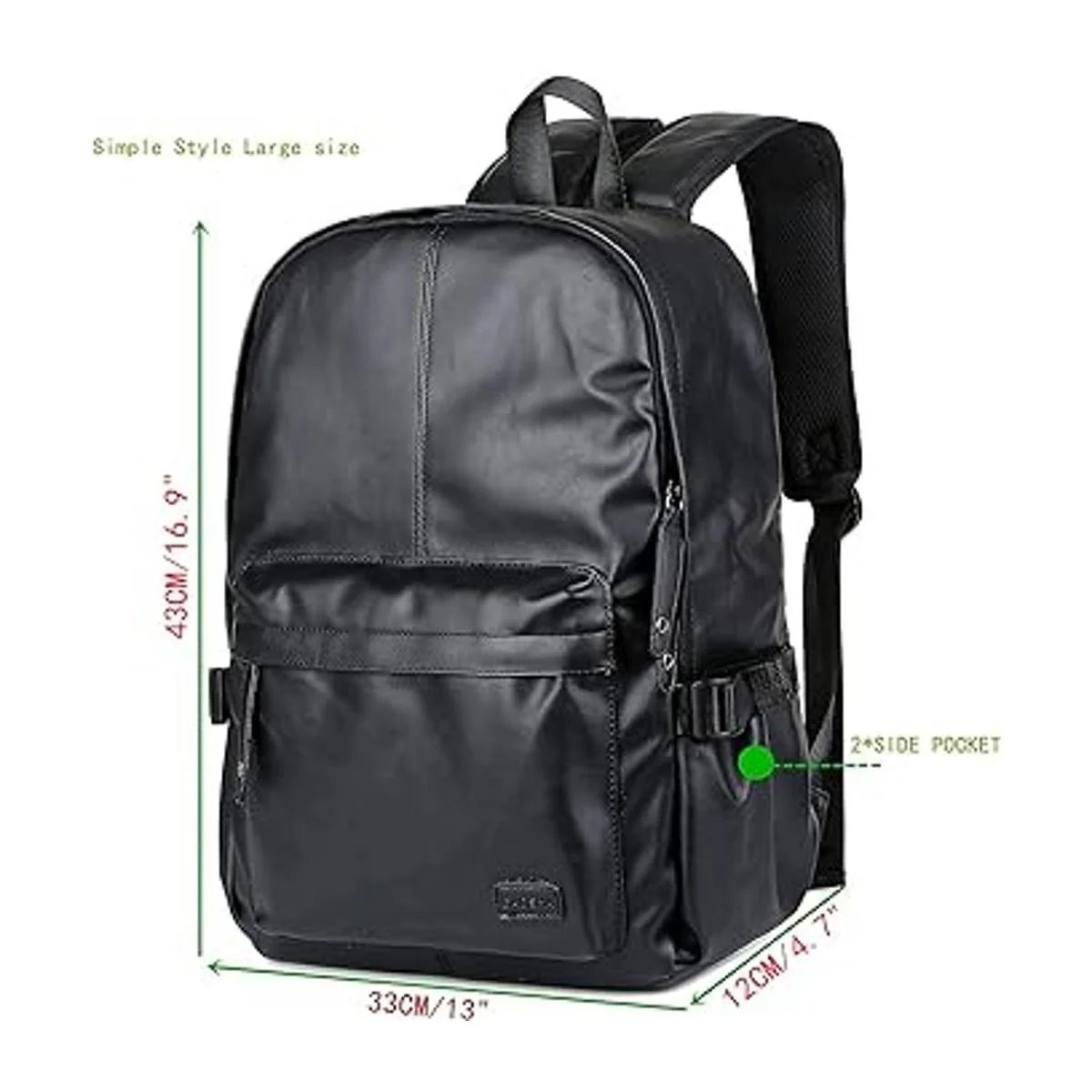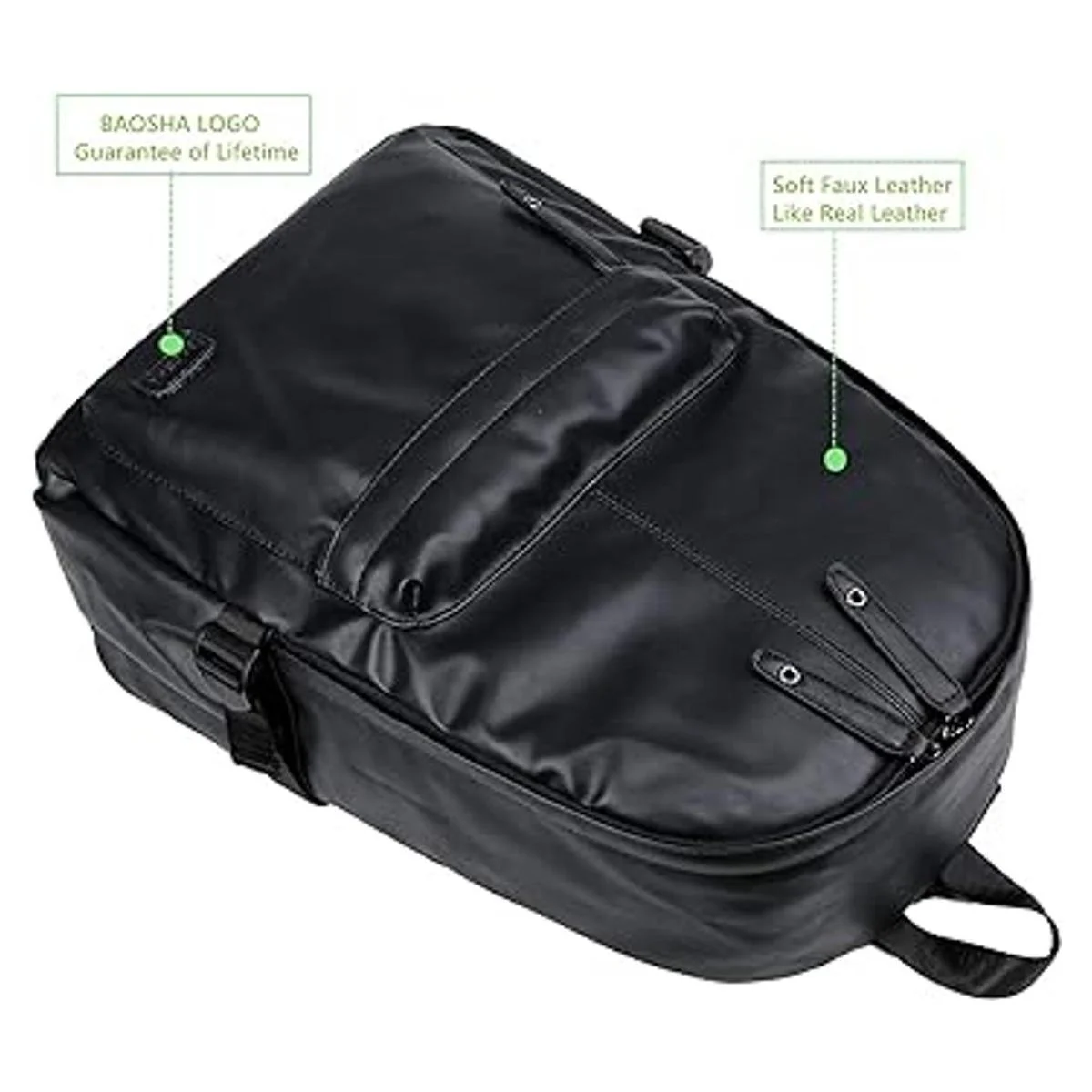 BAOSHA BP08 Bolsa unisex de piel sintética para computadora portátil de 15.6 pulgadas, mochila escolar universitaria, bolsas de hombro, mochila de viaje, senderismo, mochila casual, color negro, Negro, 12.9 x 18.1 x 6.2 pulgadas, Portátil