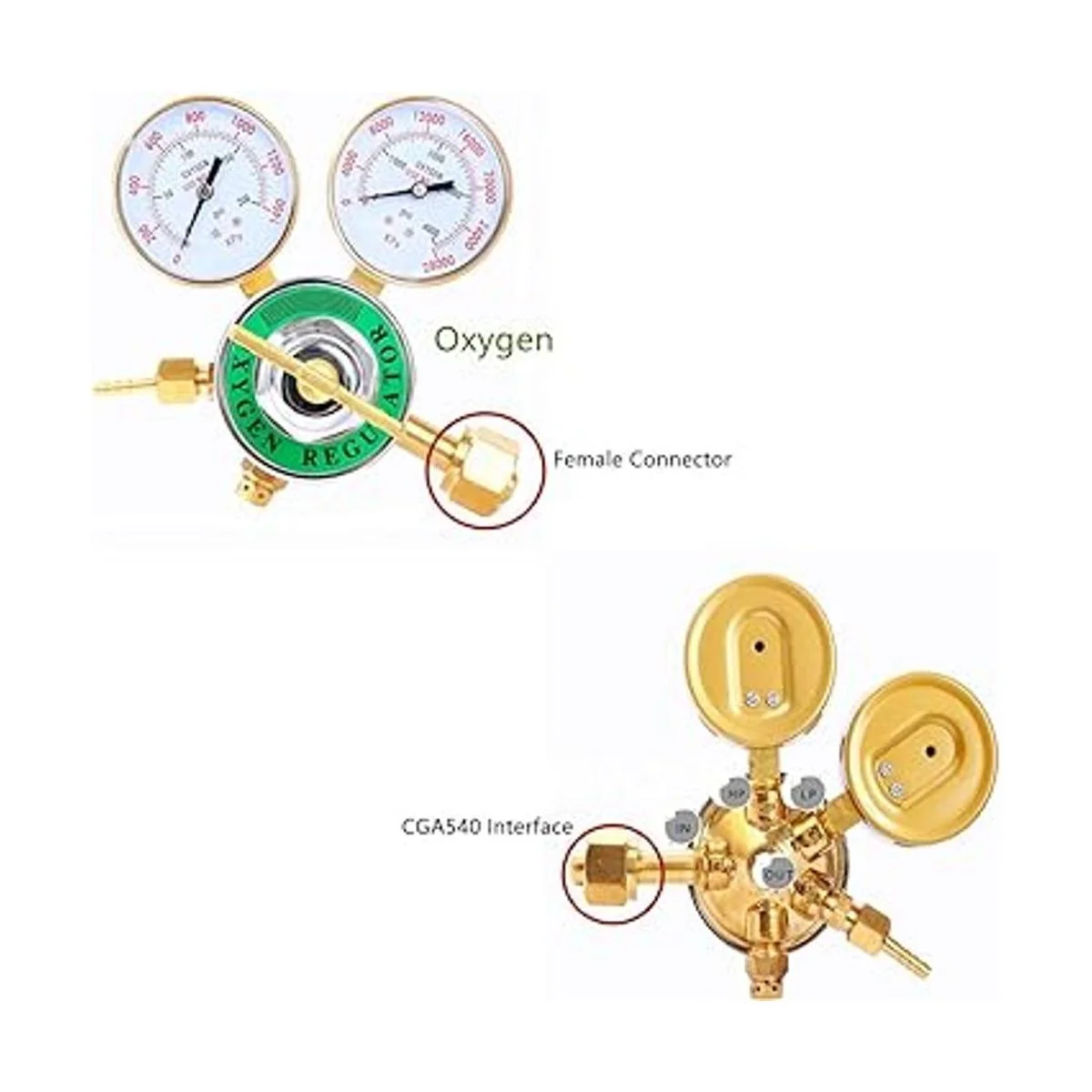 Baotkere Regulador de oxígeno, calibre de gas de soldadura, latón completo, resistente, kit de antorcha de corte de tanque grande, salida de 0 a 200 PSI, entrada de 0 a 4000 PSI, CGA 540 regulador de oxígeno