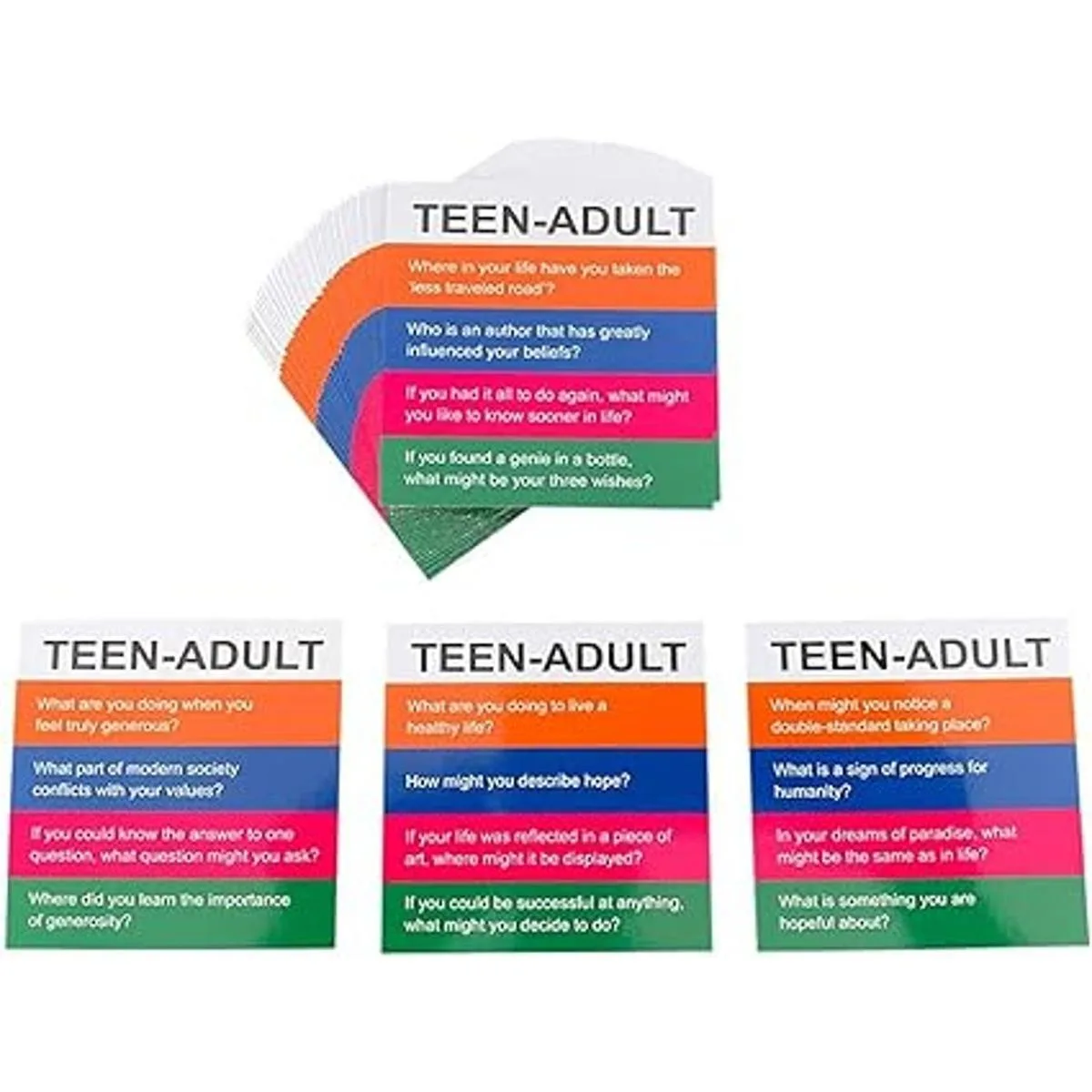 La baraja de cartas Totika Therapy Game Teen incluye 150 preguntas abiertas diseñadas para promover el desarrollo moral, la conciencia social y la civilidad para adolescentes y adultos.