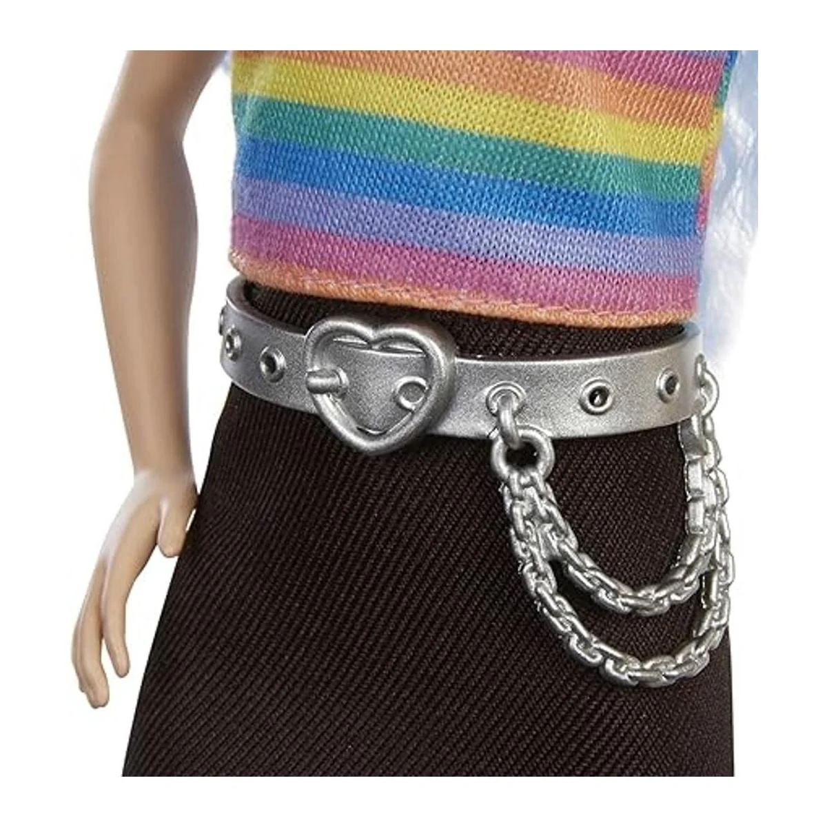 Barbie Fashionistas Doll 170, parte superior de rayas arcoíris y falda negra, juguete para niños de 3 a 8 años, rosa