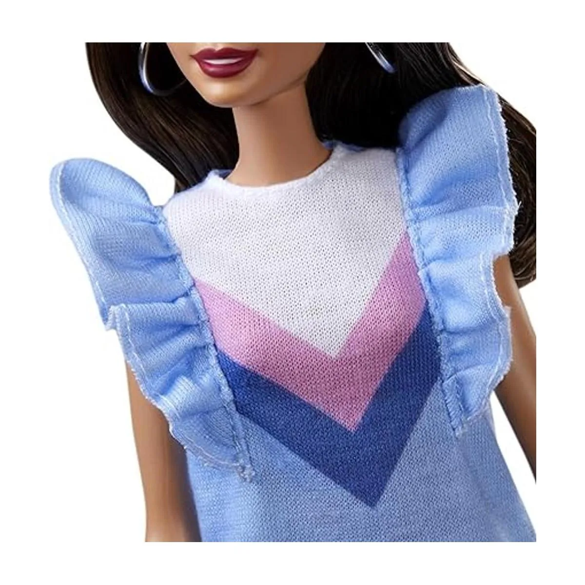 Barbie Fashionistas Muñeca 121 con pelo largo moreno y pierna protésica con vestido y accesorios, para niños de 3 a 8 años, color azul