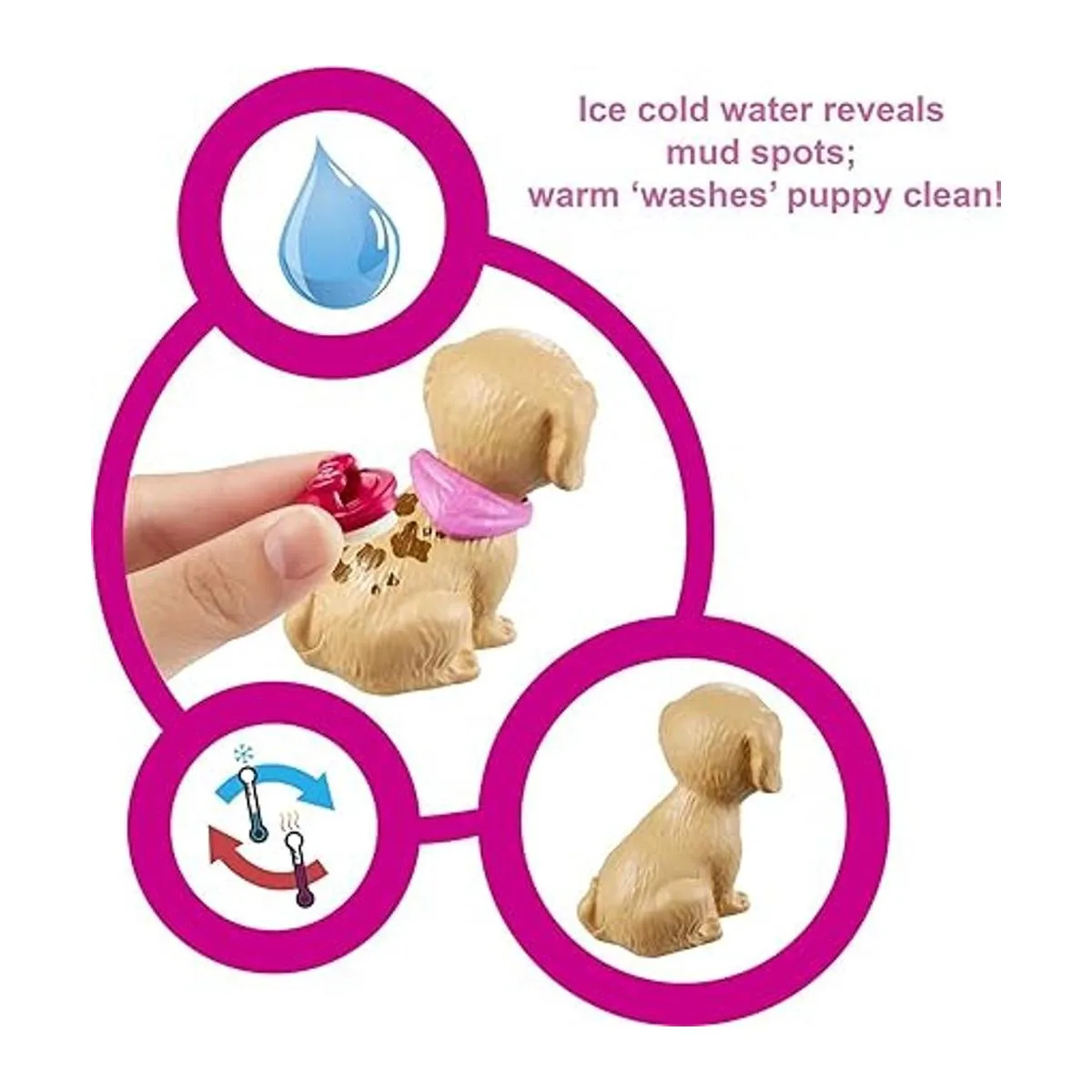 Barbie Muñeca 11.5 pulgadas, rubia y set de juego de tienda de mascotas, con 4 mascotas, función de aseo, cambio de color y accesorios, gran regalo para niñas de 3 a 7 años