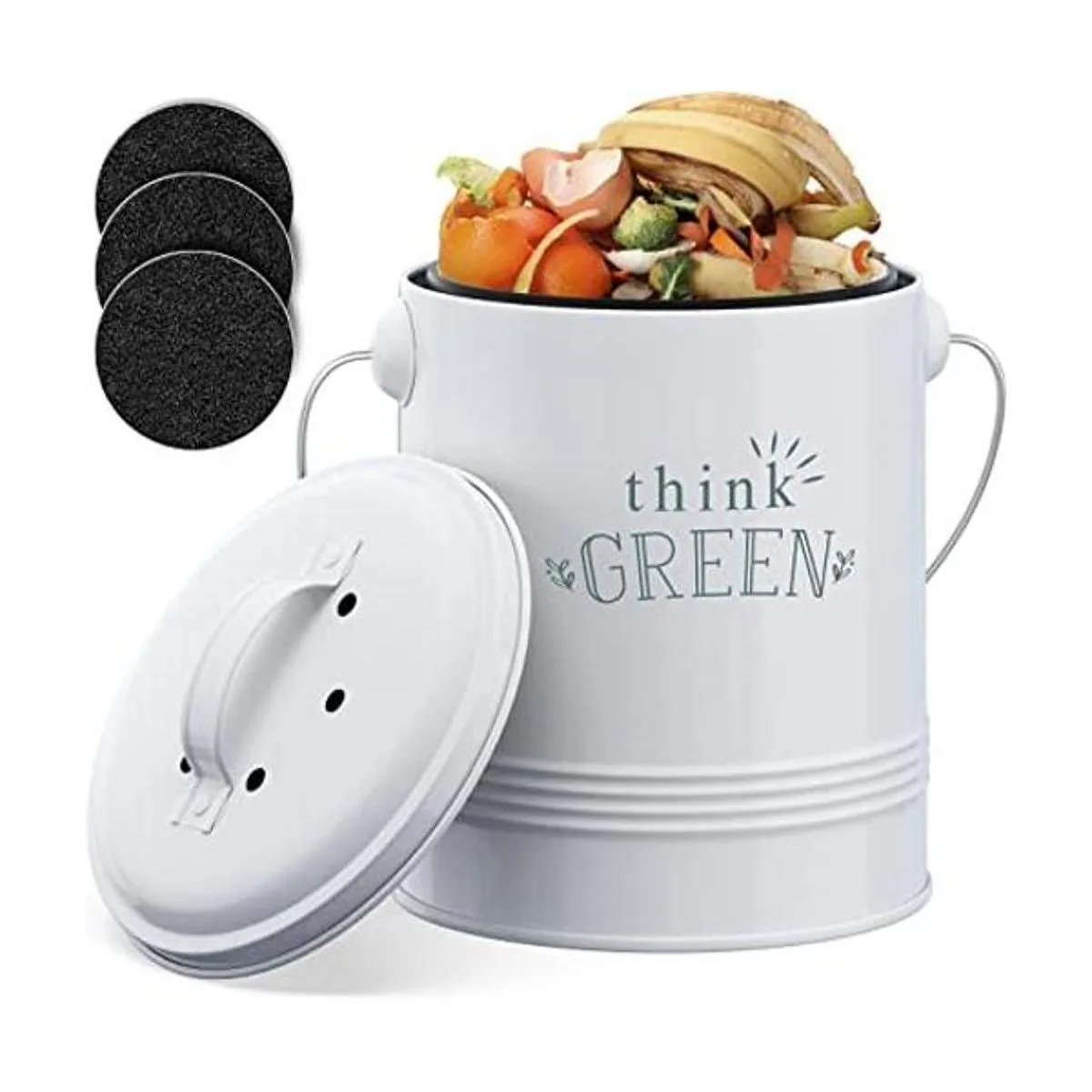Incluye filtros absorbentes de olores: este pequeño cubo de compost para cocina viene con filtros de carbón que absorben el olor para la tapa. Está diseñado para ser inodoro, ya que el filtro de carbón funciona para atrapar y controlar los olores. Incluye 3 filtros extra de carbón.